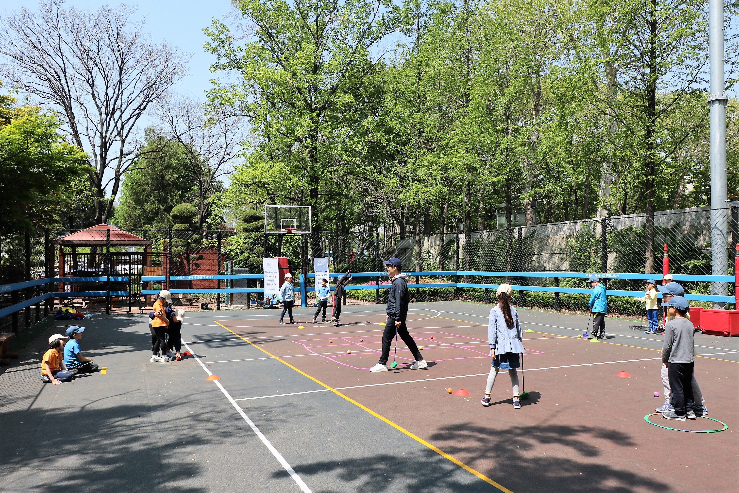 오늘의 팀별 경기인 땅따먹기를 하기 위해 코치님과 함께 준비하고 있는 아이들
