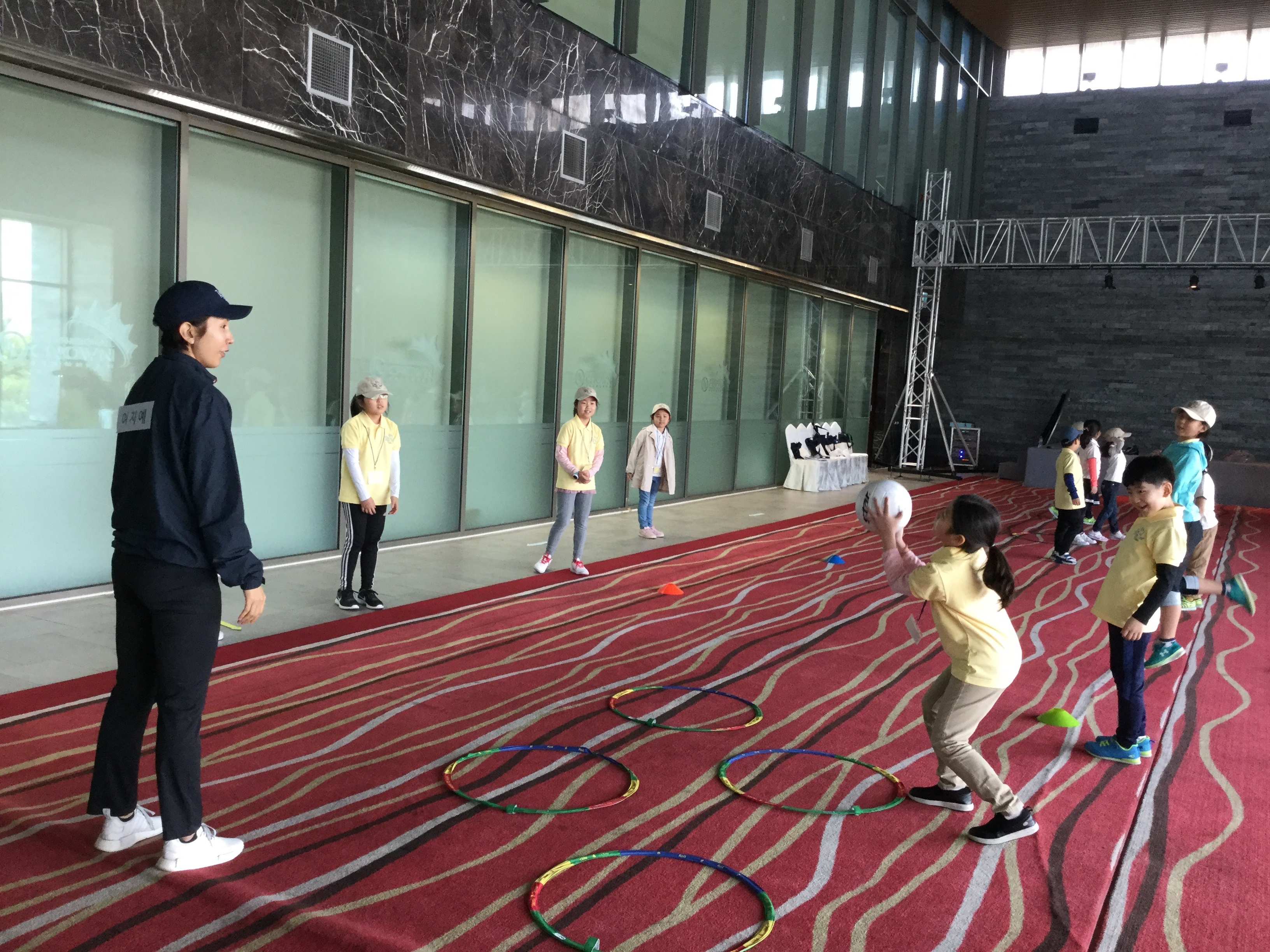 공과 빨리 친숙해지기 위해서 큰공부터 다루는 연습을 하고 잇는 아이들