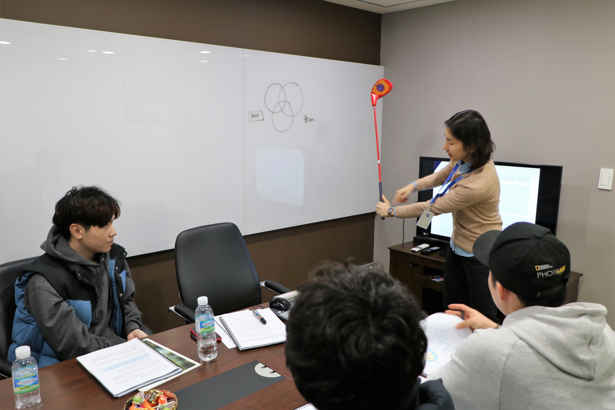 스윙에 대한 기본적인 메카니즘을 설명 중인 더 퍼스트 티 코리아 마스터코치