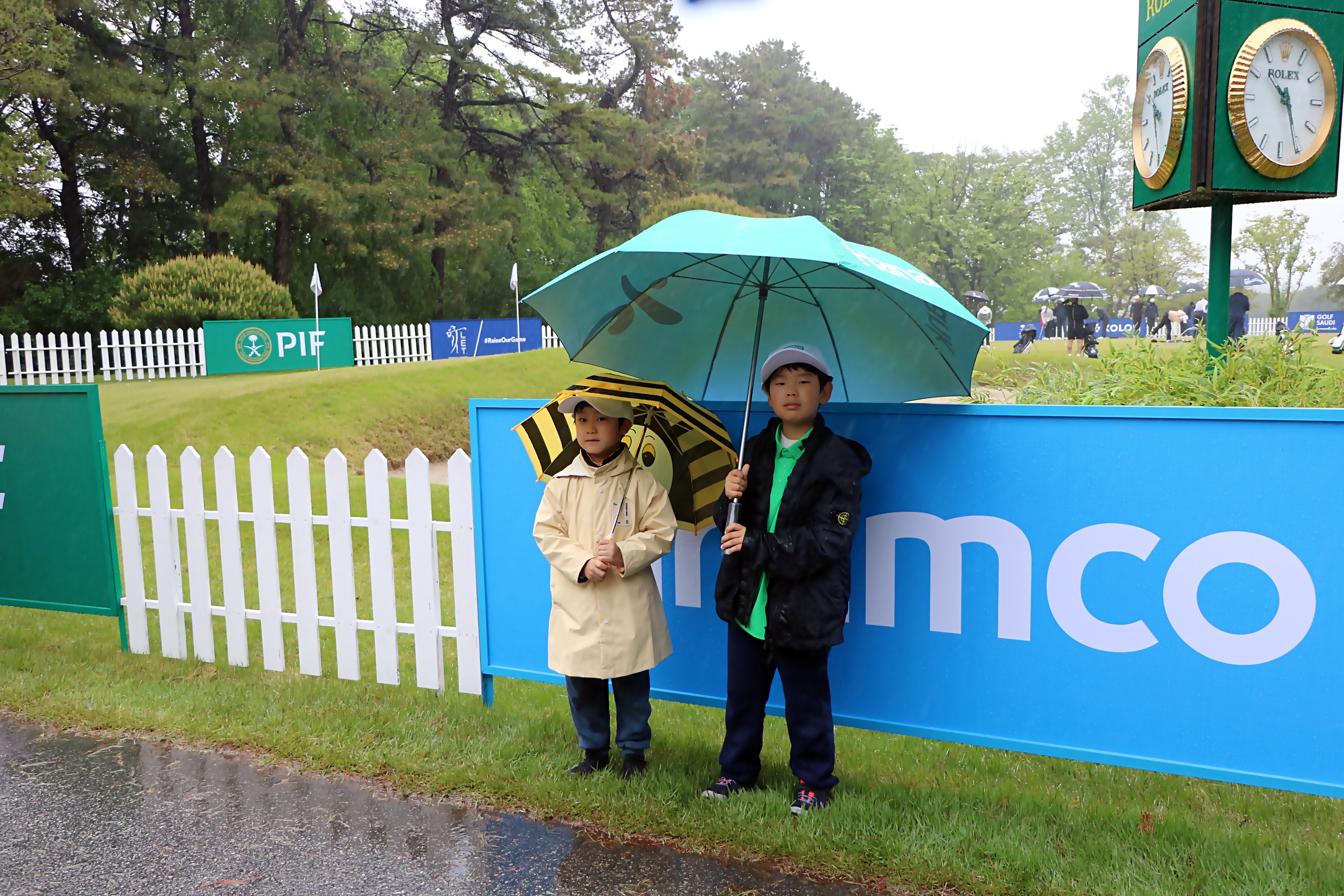 우산 속 작은 우산_세찬 빗방울도 골프를 배우고자 하는 우리의 열의를 막지 못했다.