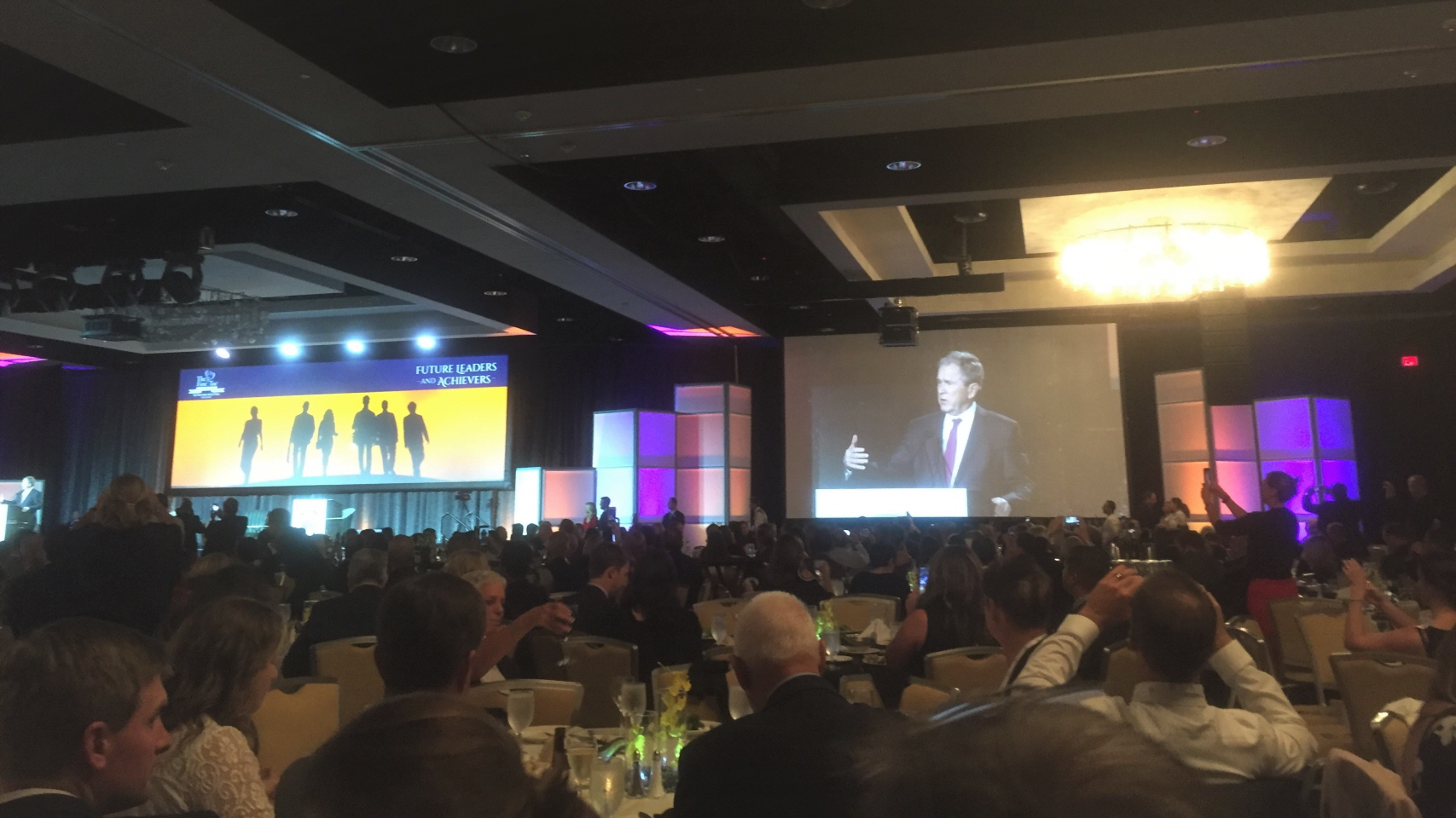 올해로 20주년을 맞이한 더 퍼스트 티의 축하 만찬에서 축사를 하는 조지 부시 전 미국 대통령