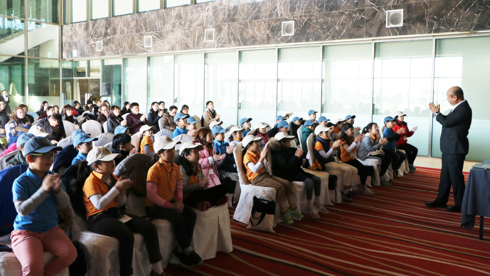 함선욱 국민대 교수에게 라이프 디자인을 주제로 한 특강을 듣고 있는 교육생과 학부모님들