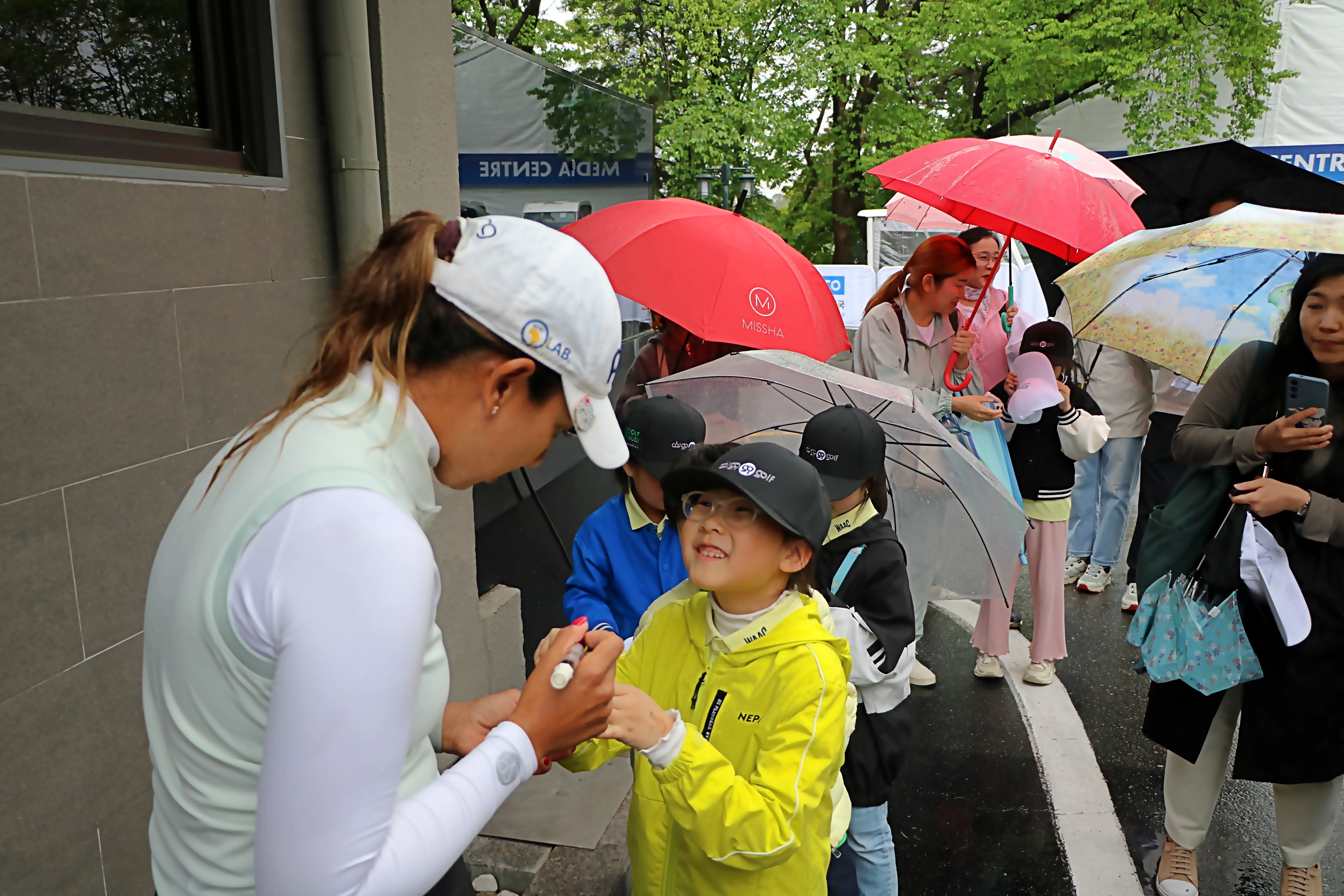 모로코의 톱스타인 마하 선수에게 사인을 받고 있는 아이들