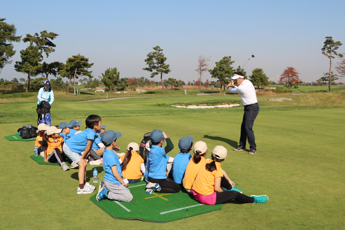 실제 골프클럽을 가지고 하기 때문에 교육생의 안전을 위해 보다 더 자세히 설명하고 있는 마스터 코치