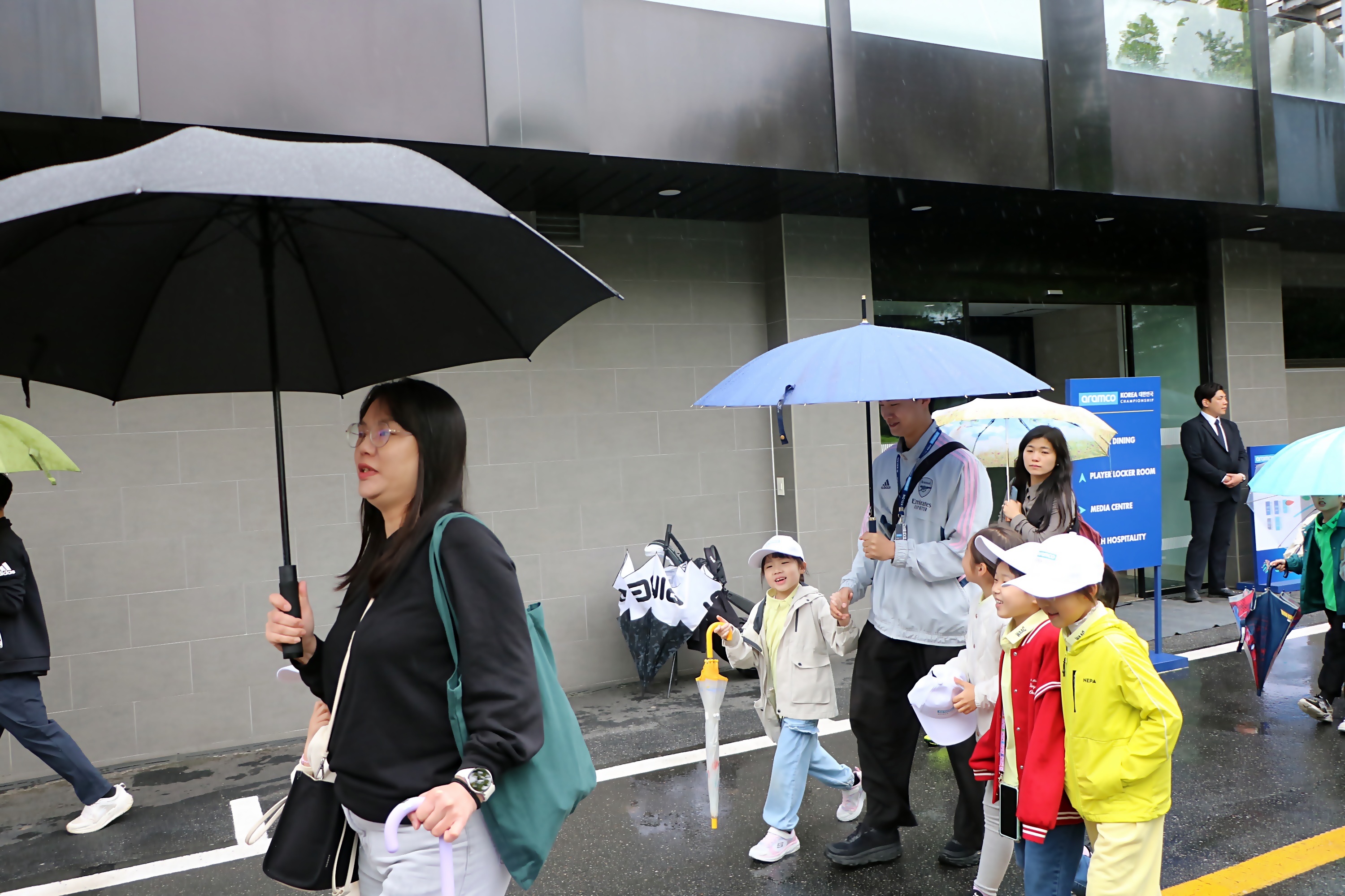 코치님과 함께 다음 교육 장소로 안전하게 이동하고 있는 아이들