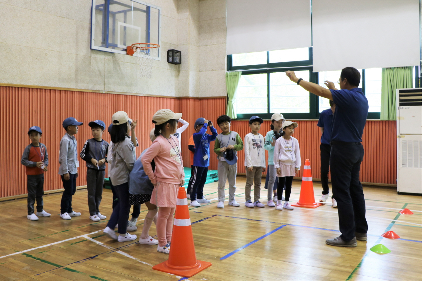 기초체력 훈련을 하기에 앞서 경기방식에 대한 설명을 듣고 있는 교육생들