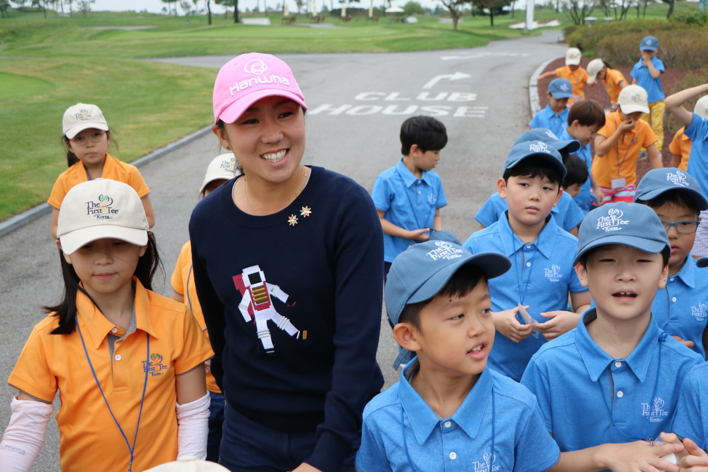 김인경 선수와 손을 잡고 다정하게 이동하고 있는 모습