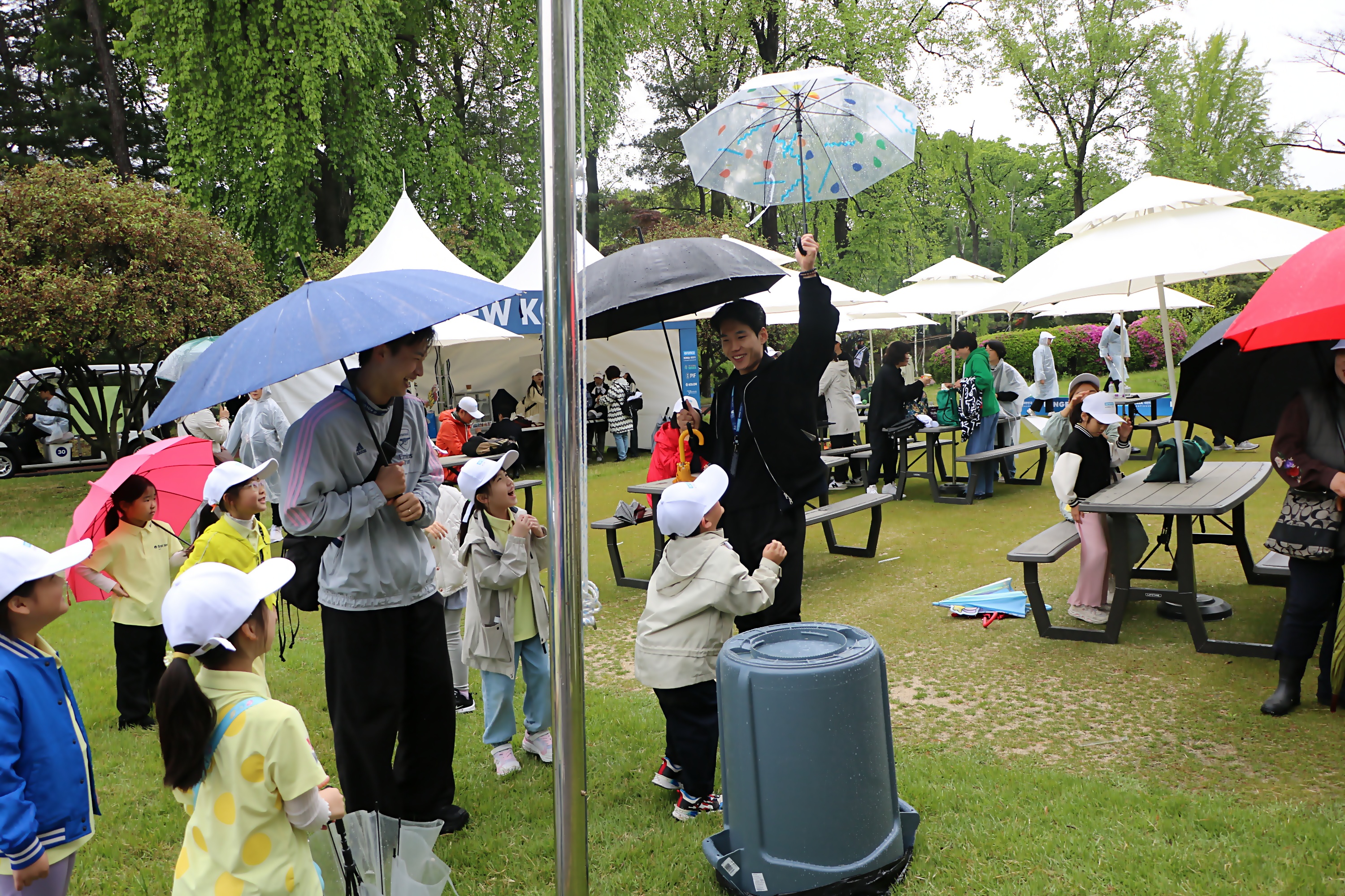 코치들과 함께 장난을 치며 즐거워하는 모습