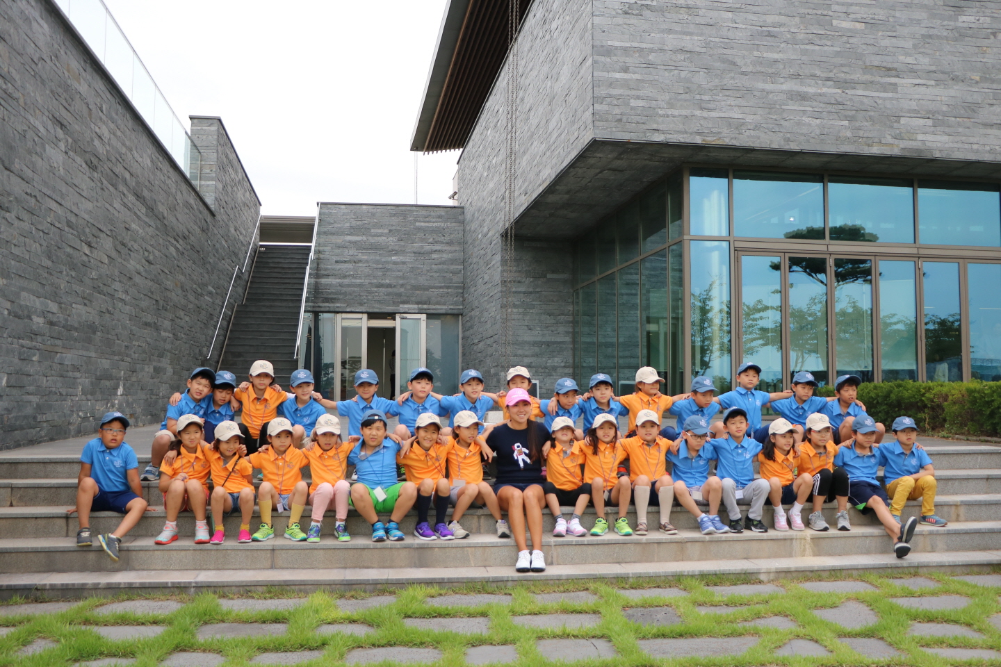 우리는 하나! 사이좋게 어깨동무를 하고 모여앉아 있는 하반기 정기교육생들과 김인경 선수