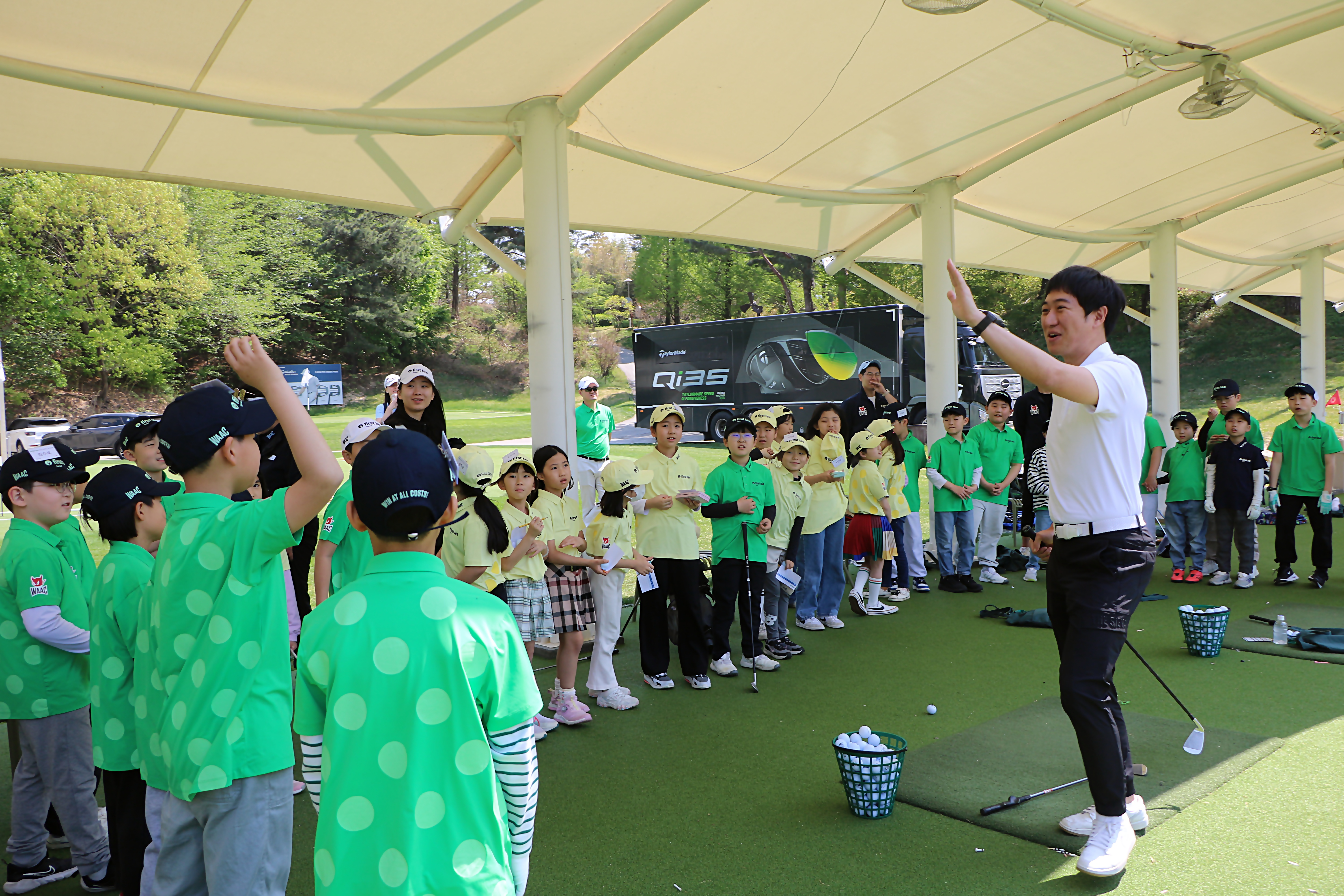 이동균 프로님의 골프특강이 시작되자 평소 골프에 대해 궁금했던 점을 열심히 질문하고 있는 아이들