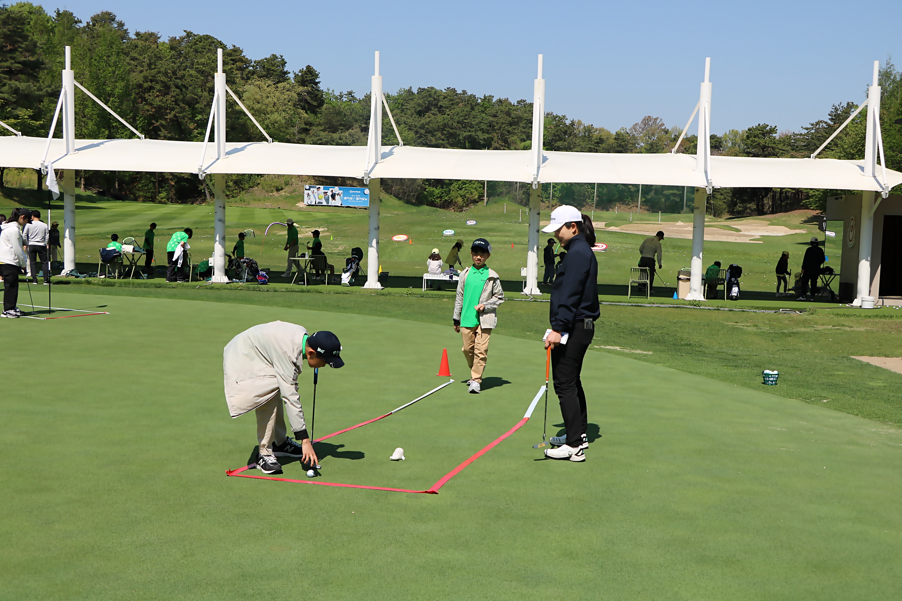 실제 그린에서 스코어카드도 직접 작성해 보며 퍼팅실습을 해보고 있는 아이들