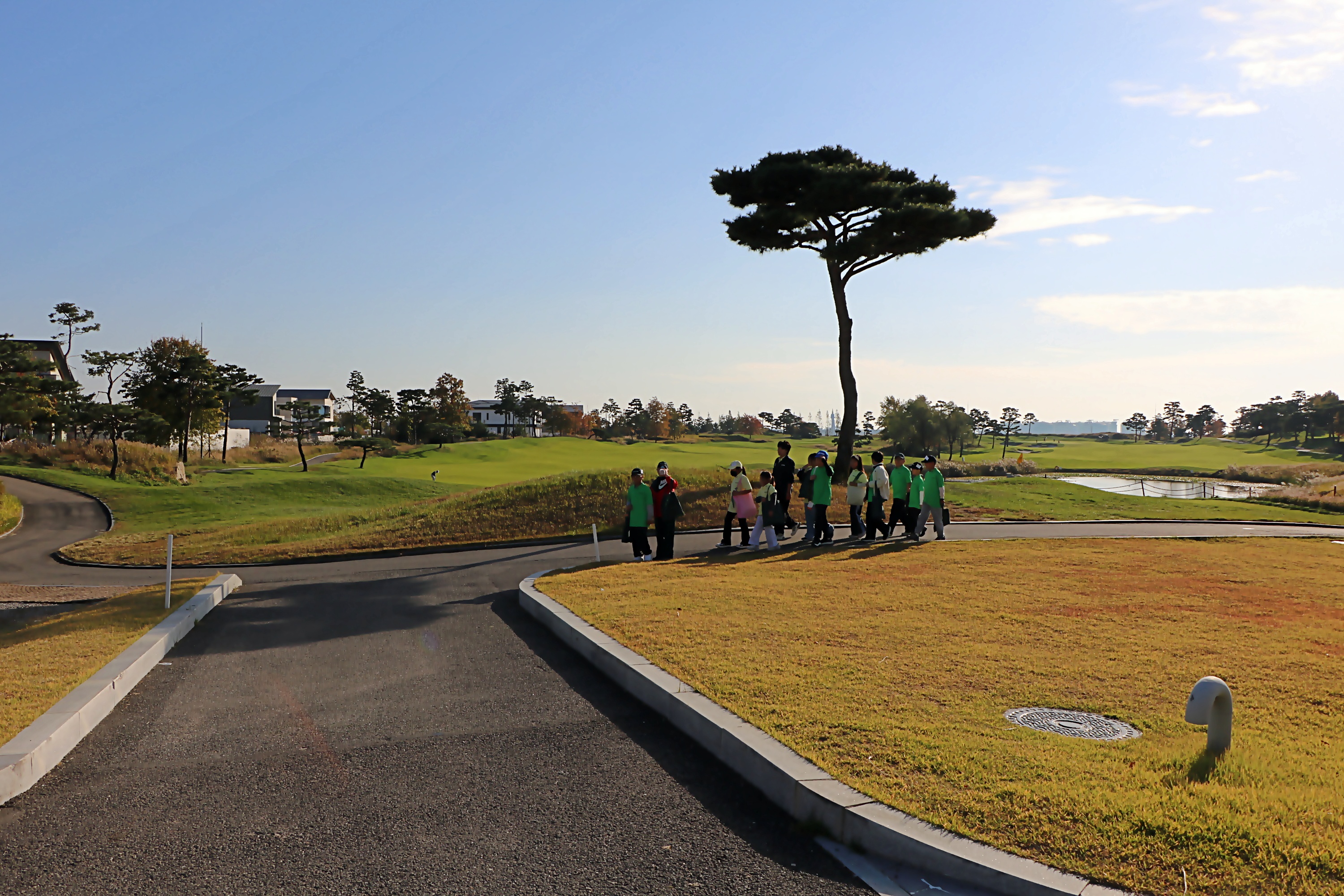 코스에서 가을 정취가 물씬 느껴지는 가운데 질서정연하게 이동하고 있는 아이들