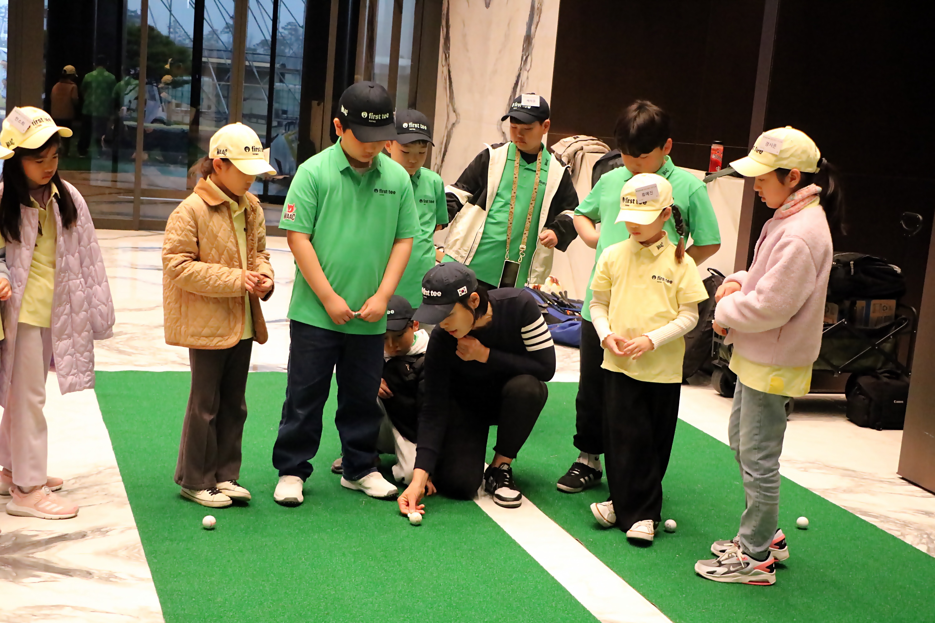 볼마크를 하는 방법에 대해서 배우고 있는 아이들