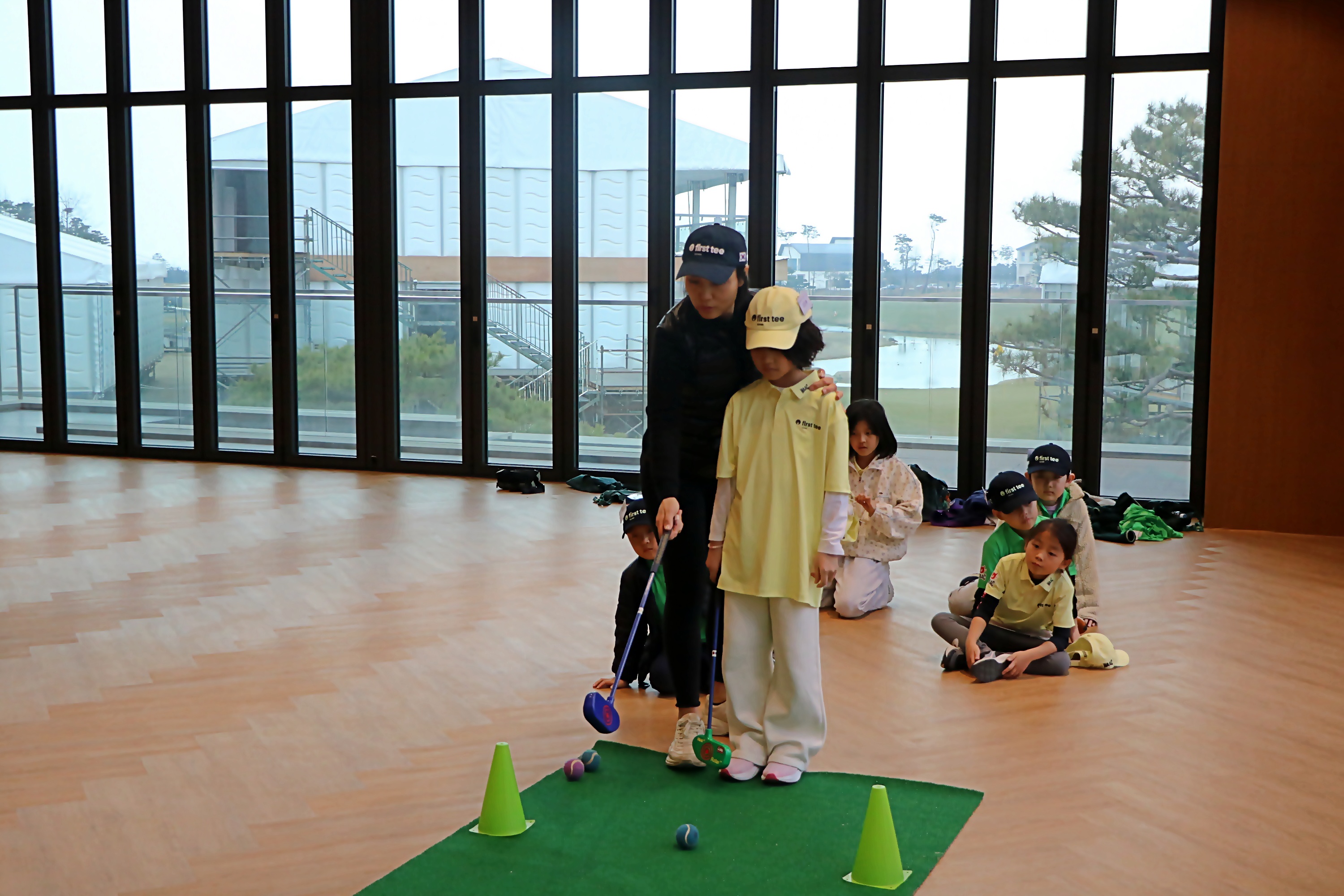 퍼트하는 요령에 대해서 설명해 주고 있는 모습