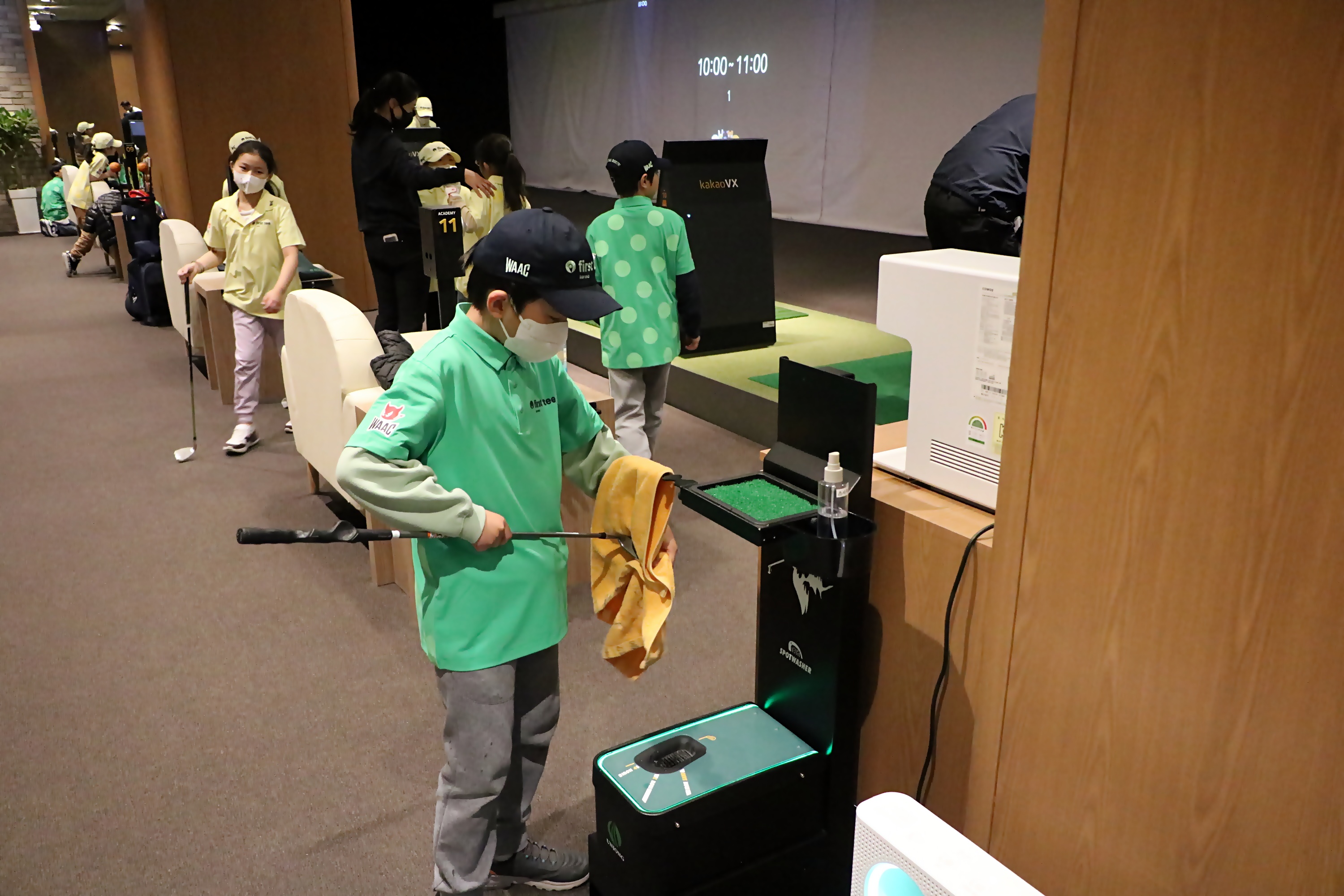 본인이 사용한 클럽을 세척하면서 깨끗하게 장비를 관리하는 모습