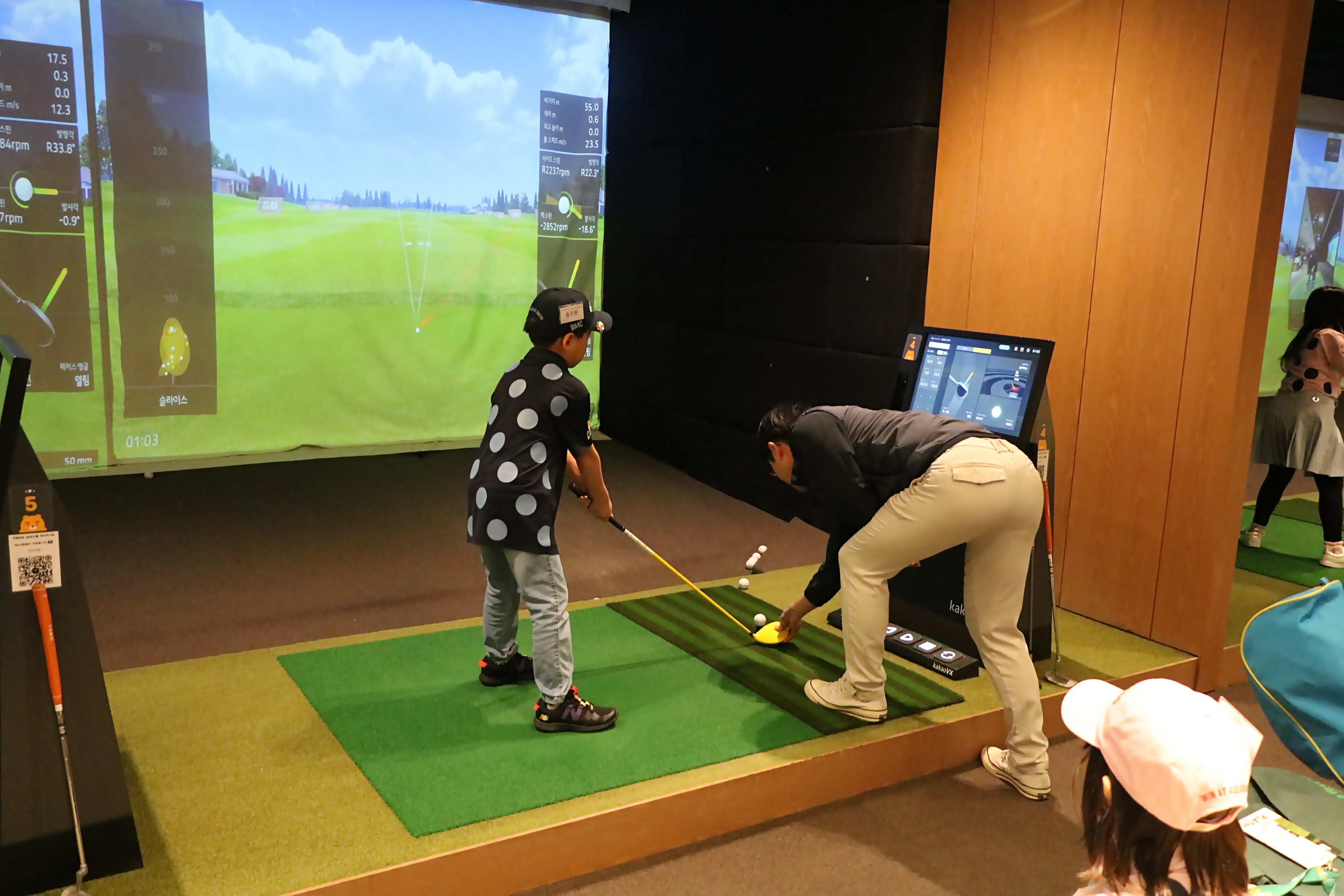 클럽 종류에 맞게 골프티 높이를 조정해 주고 있는 코치님