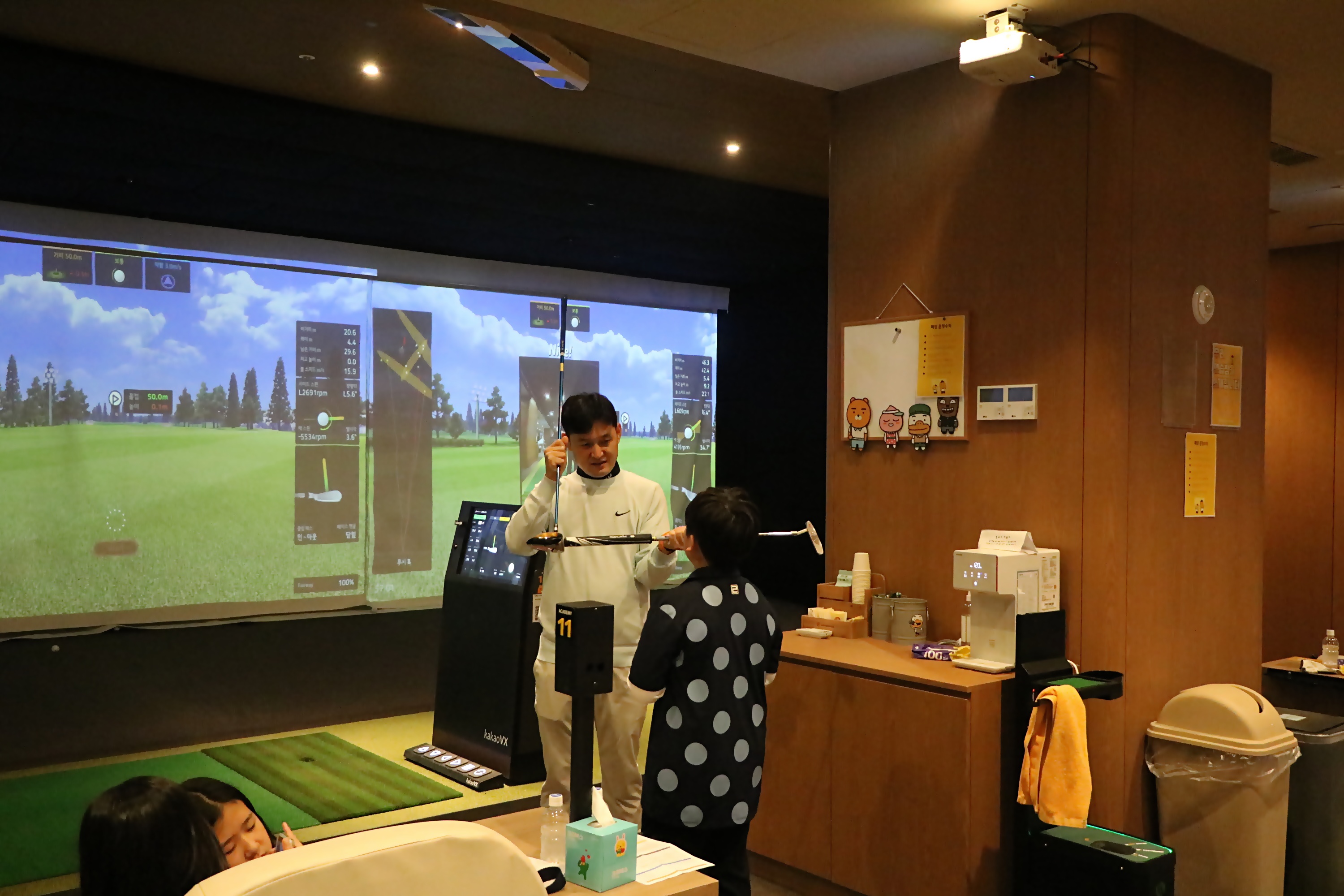 클럽헤드 페이스가 열린 모양에 따라 공의 방향이 달라짐을 설명해 주는 모습