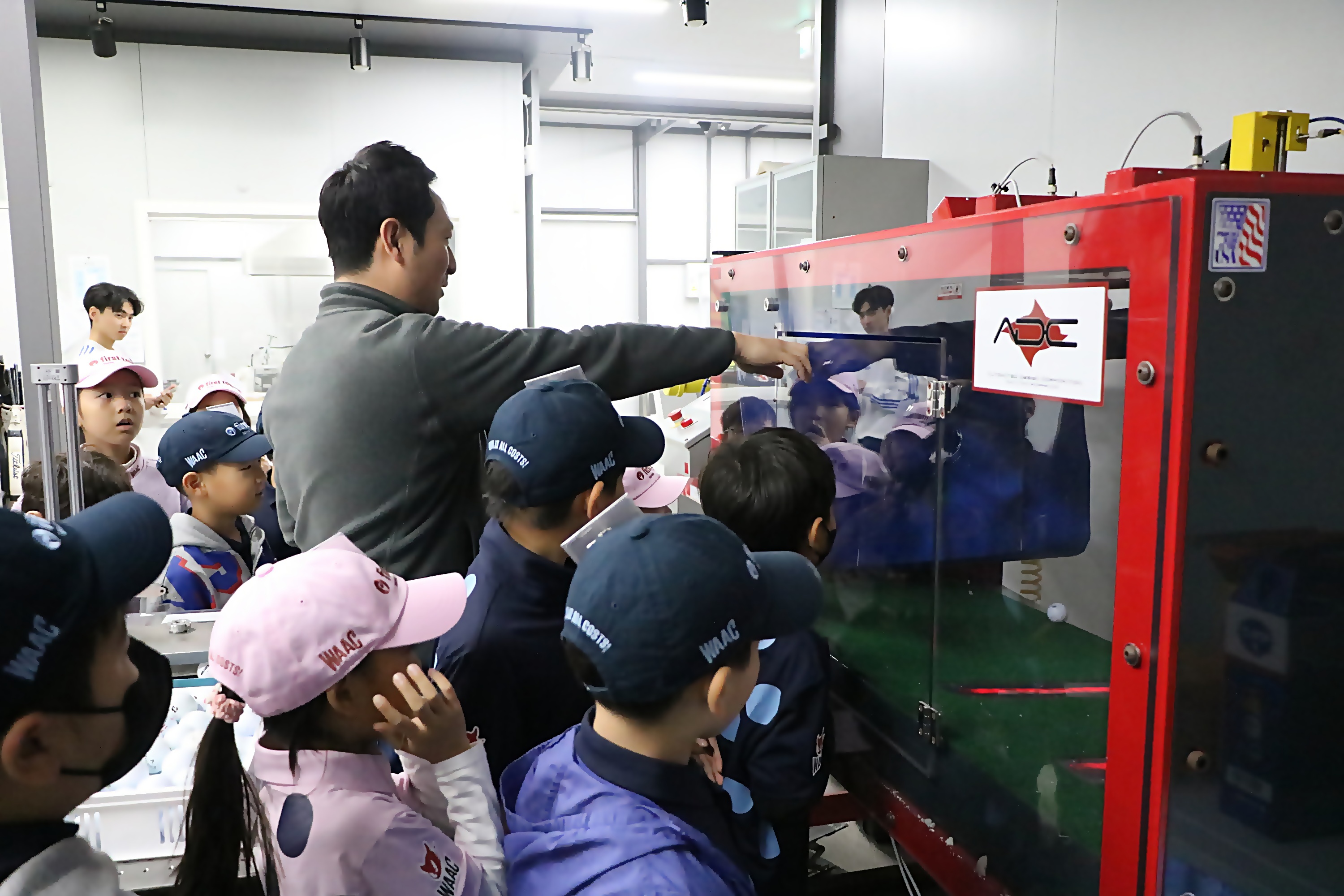 볼의 내구성을 테스트 하기 위한 장비를 시연하고 있는 모습