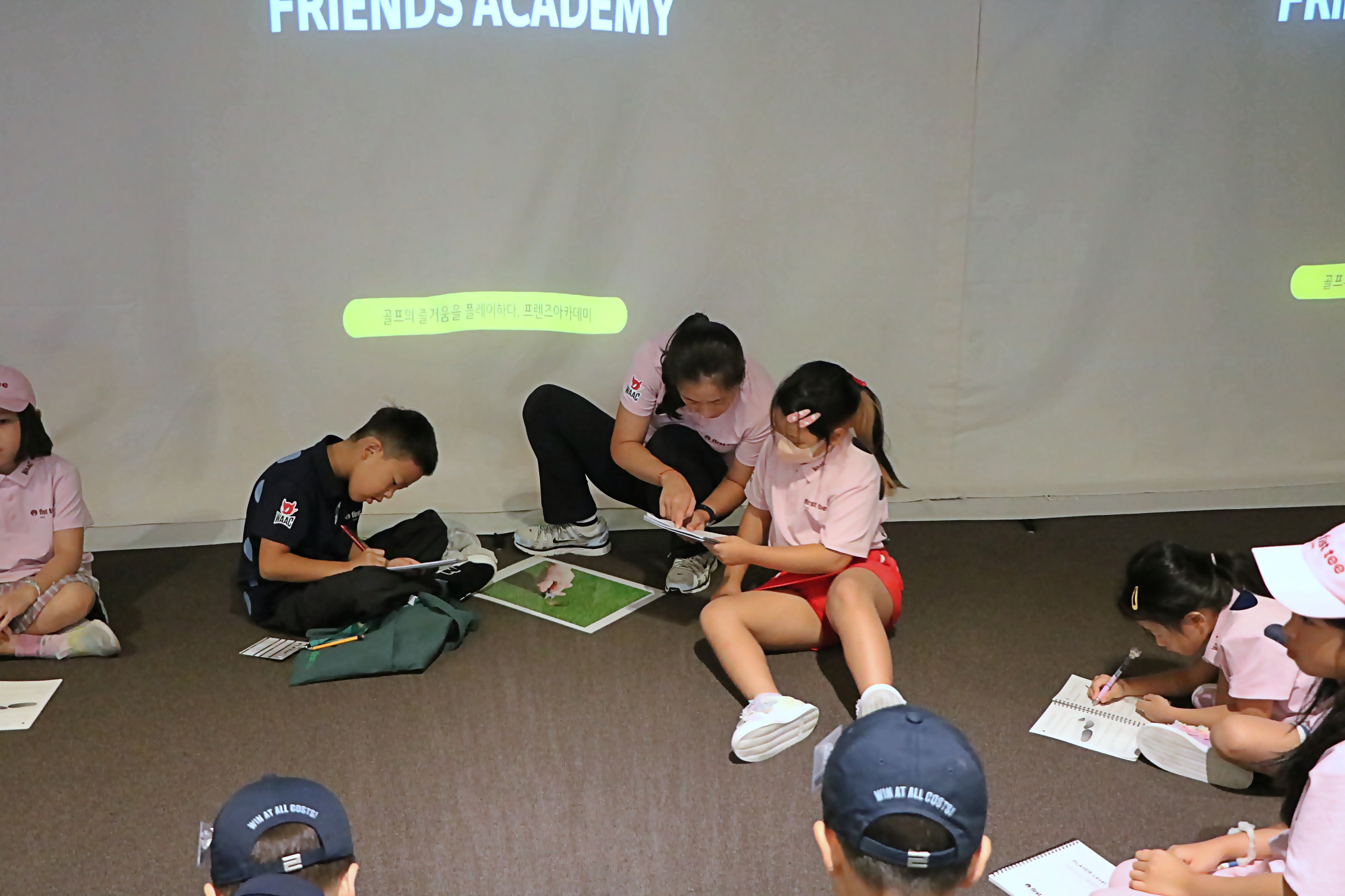 야디지북에 나온 질문의 빈칸에 답변을 적으며 궁금한 점을 물어보고 있는 아이들