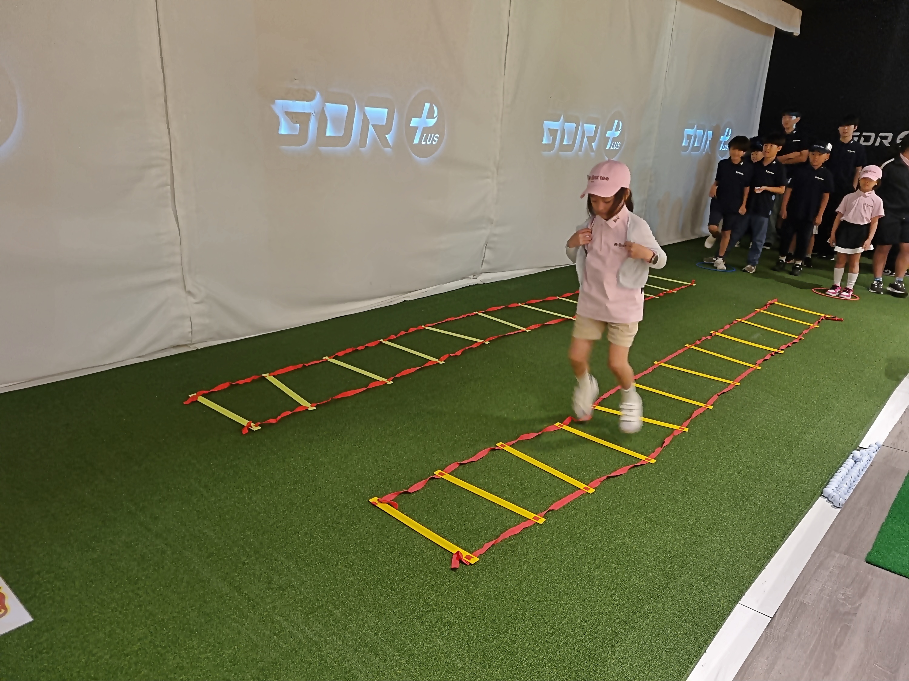 양팀으로 나뉘어 기찻길 뜀뛰기를 하며 순발력을 기르고 있는 아이들