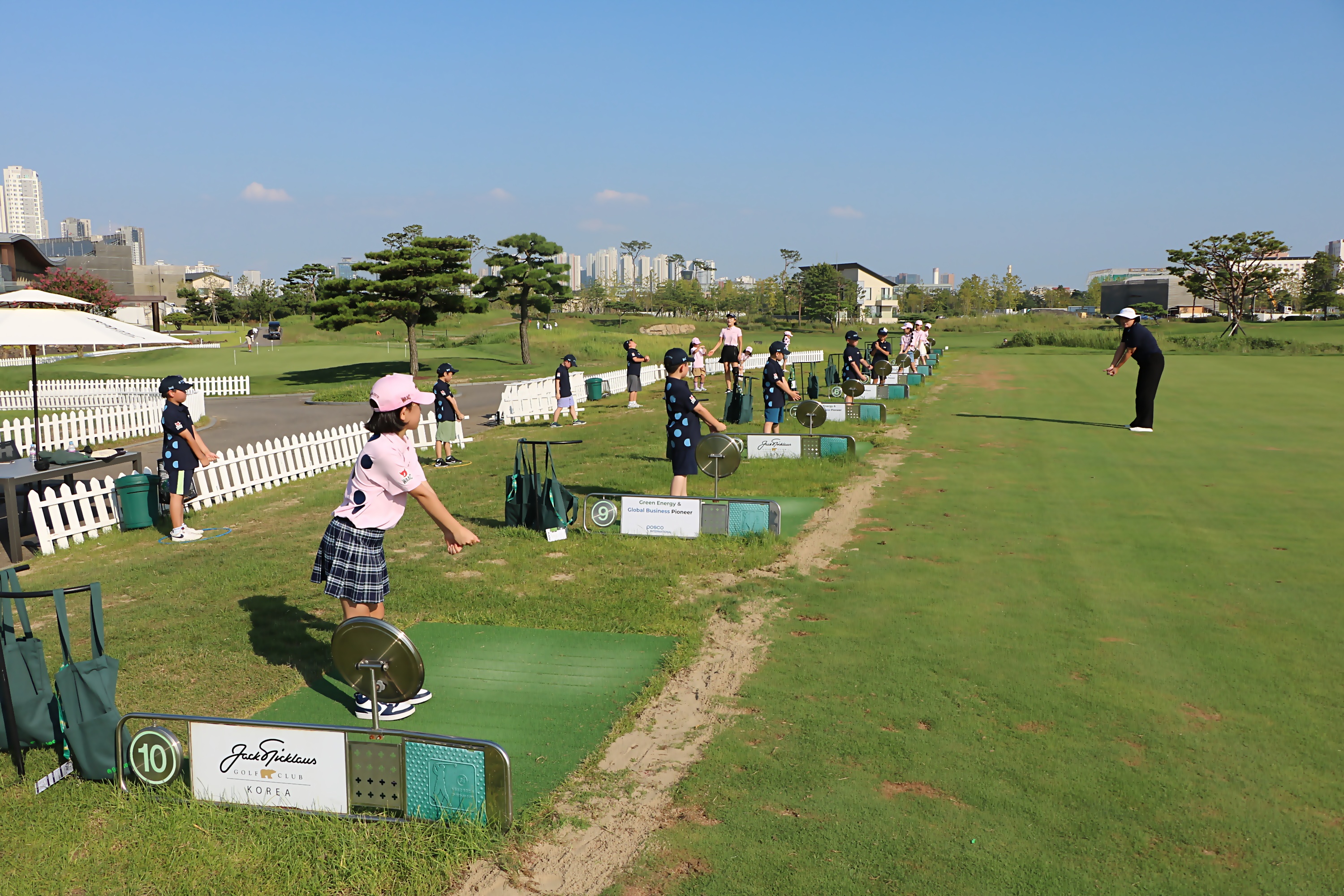 본격적인 스윙실습 전에 어드레스 자세 및 구분동작으로 스윙을 배우고 있는 아이들