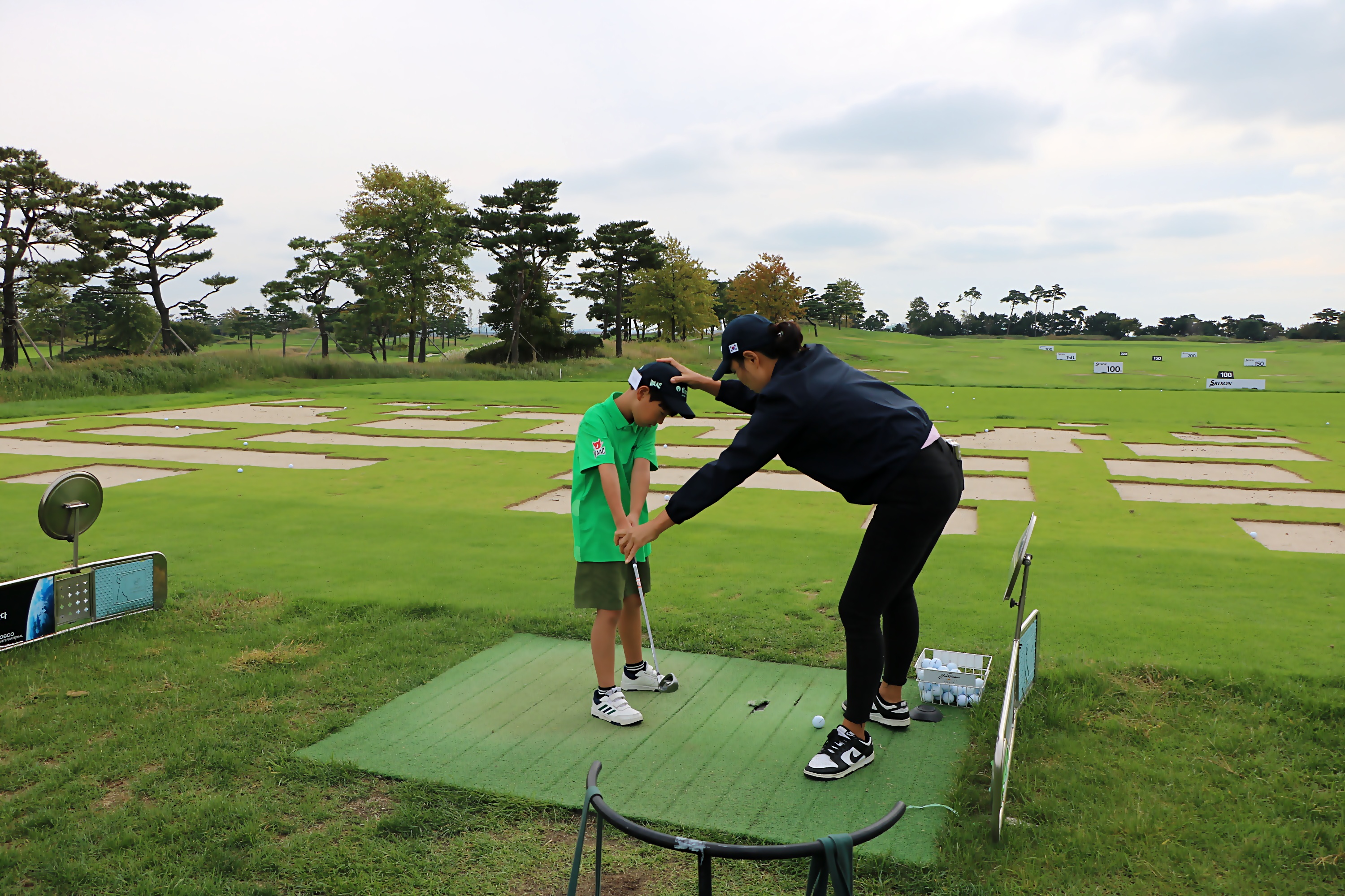 백스윙시 머리가 움직이는 문제를 교정해 주고 있는 모습