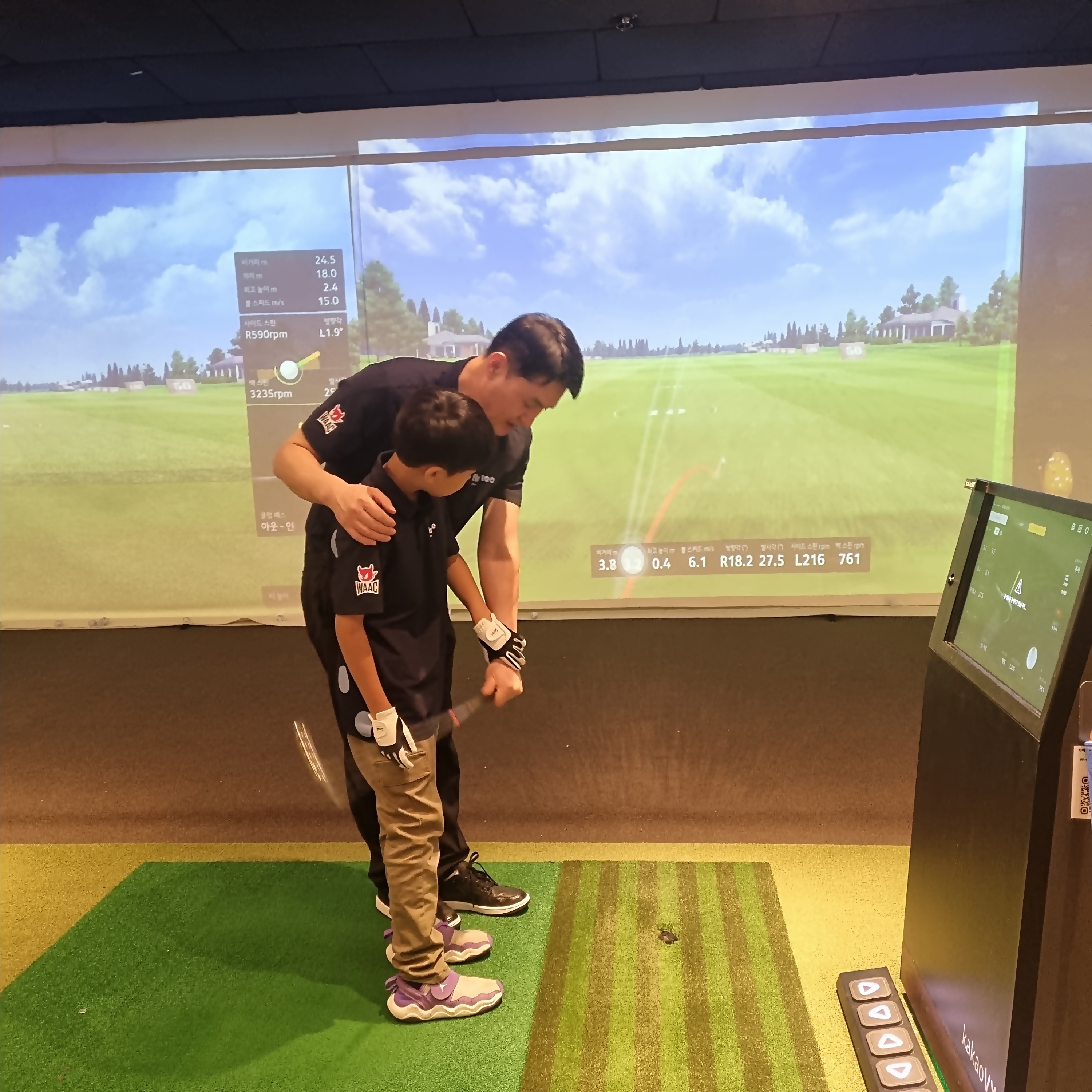 스윙시 적절한 리듬감각을 느낄 수 있도록 지도하고 있는 모습