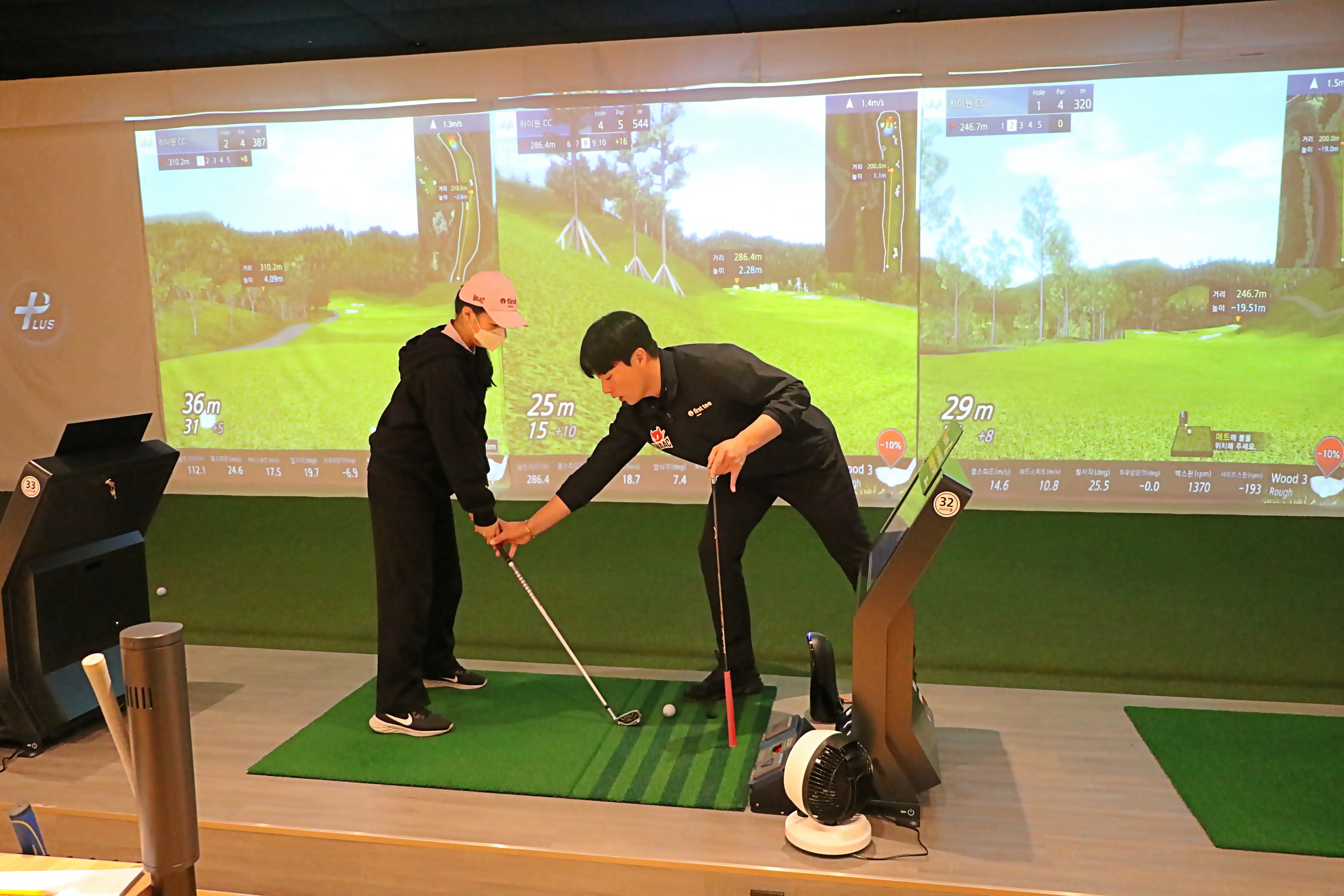 올바른 연습스윙 방법에 대해서 지도하고 있는 모습