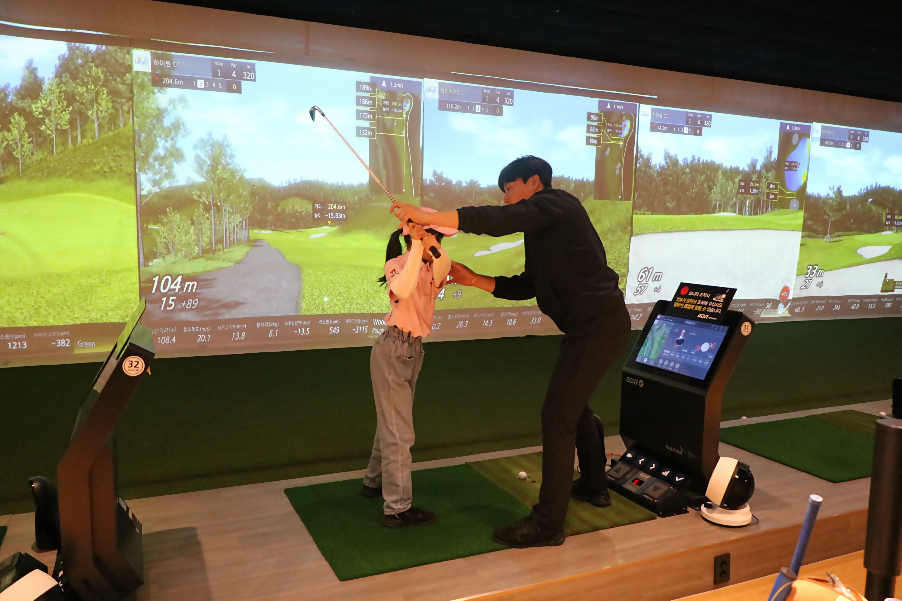 톱스윙시 손목 코킹과 샤프트 각도에 대해서 설명해 주고 있는 모습