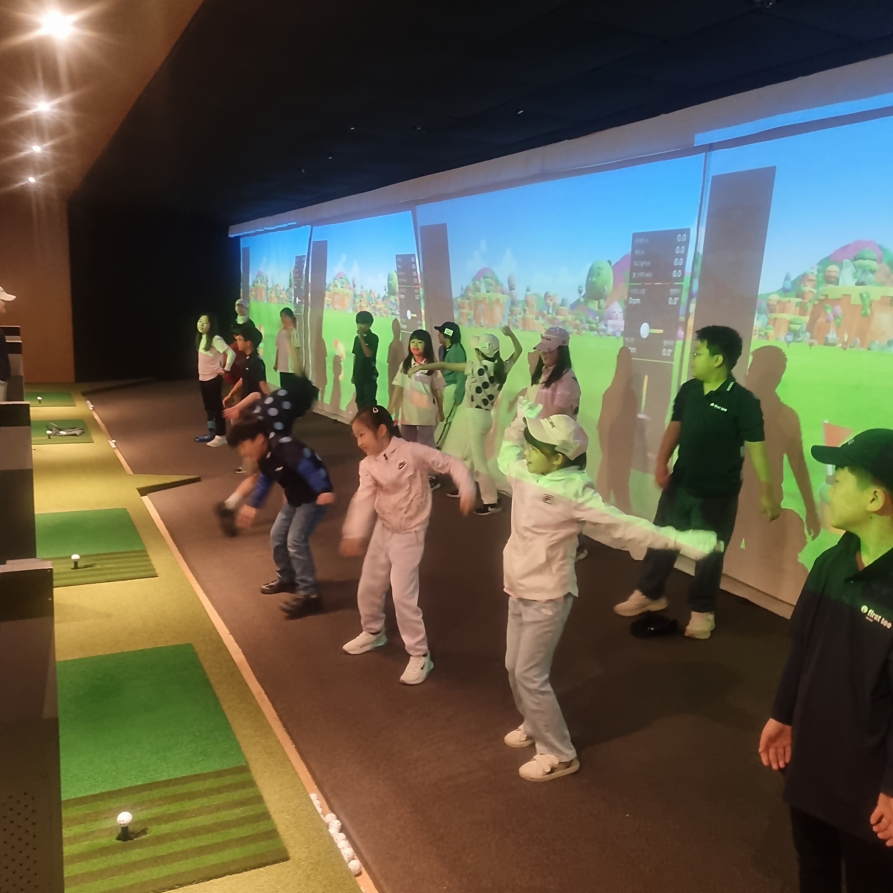 코치님을 따라 즐겁게 몸풀기를 하고 있는 아이들