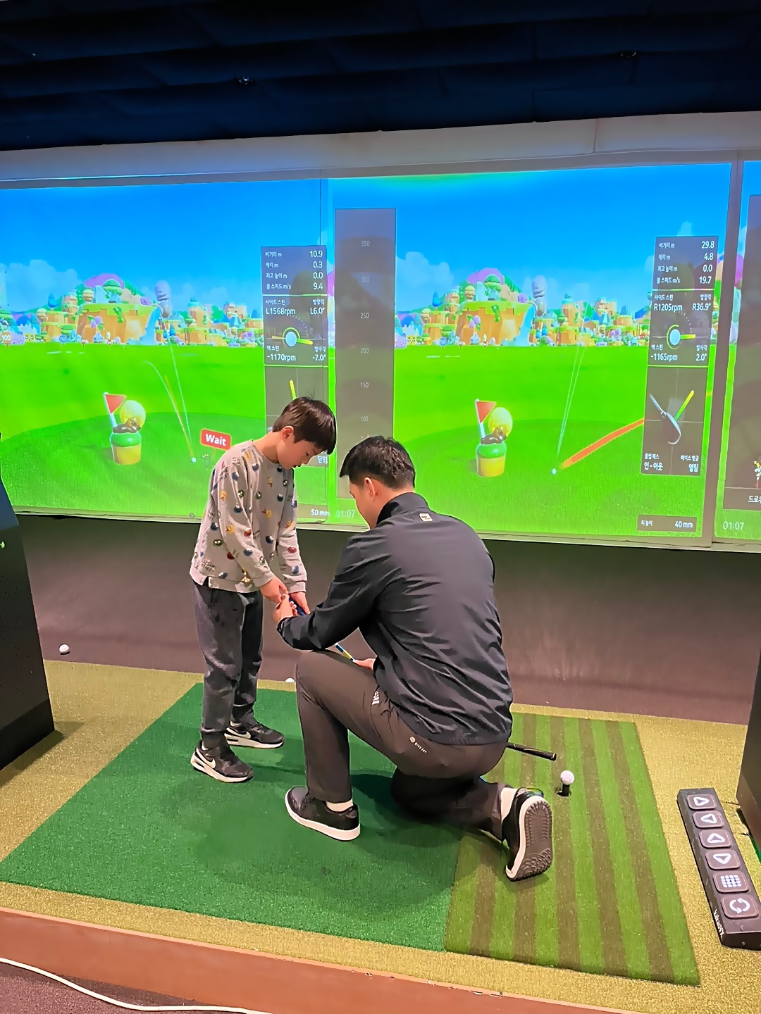올바르게 그립 잡는 법에 대해서 지속적으로 수정해 주고 있는 코치들