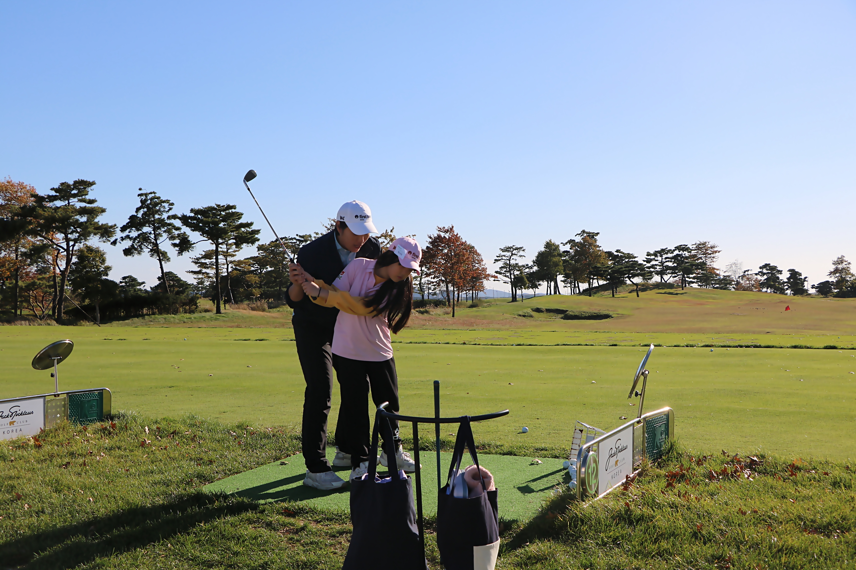 다음주 지산 야외 수업을 앞두고 올바른 백스윙 요령에 대해서 점검해 주고 있는 모습