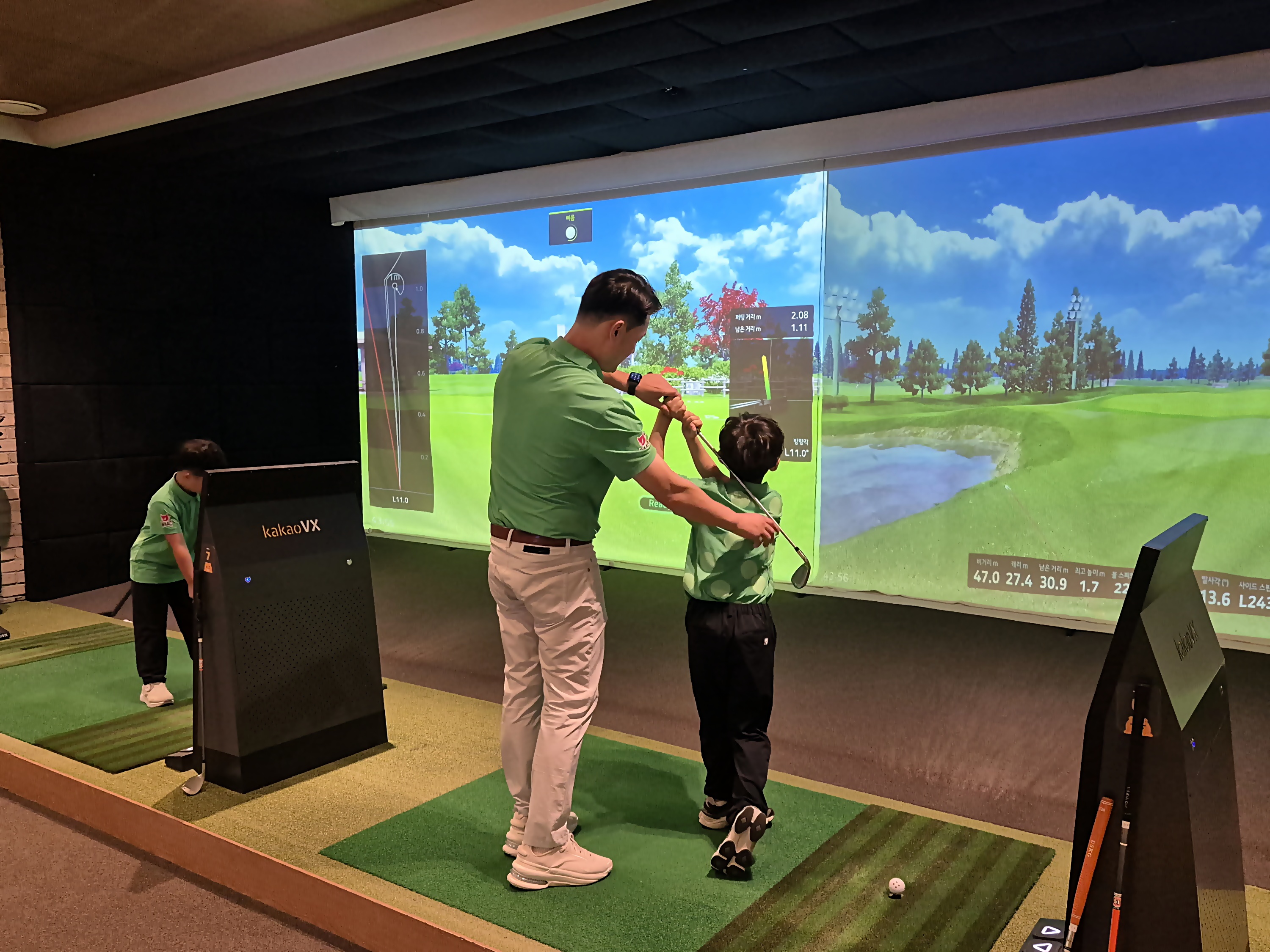 올바른 피니쉬 동작을 지도해 주고 있는 모습