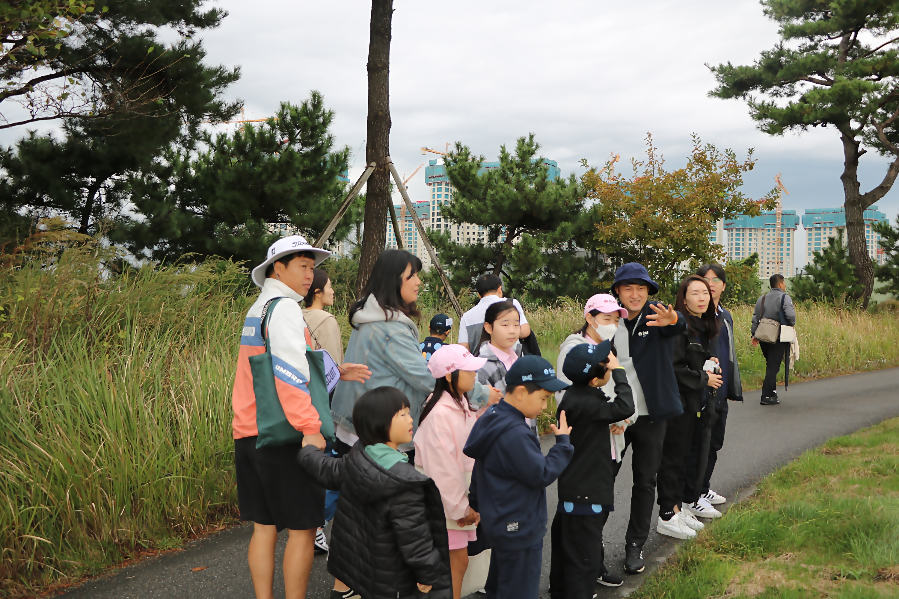 대회와 관련하여 코치님의 설명을 듣고 있는 아이들