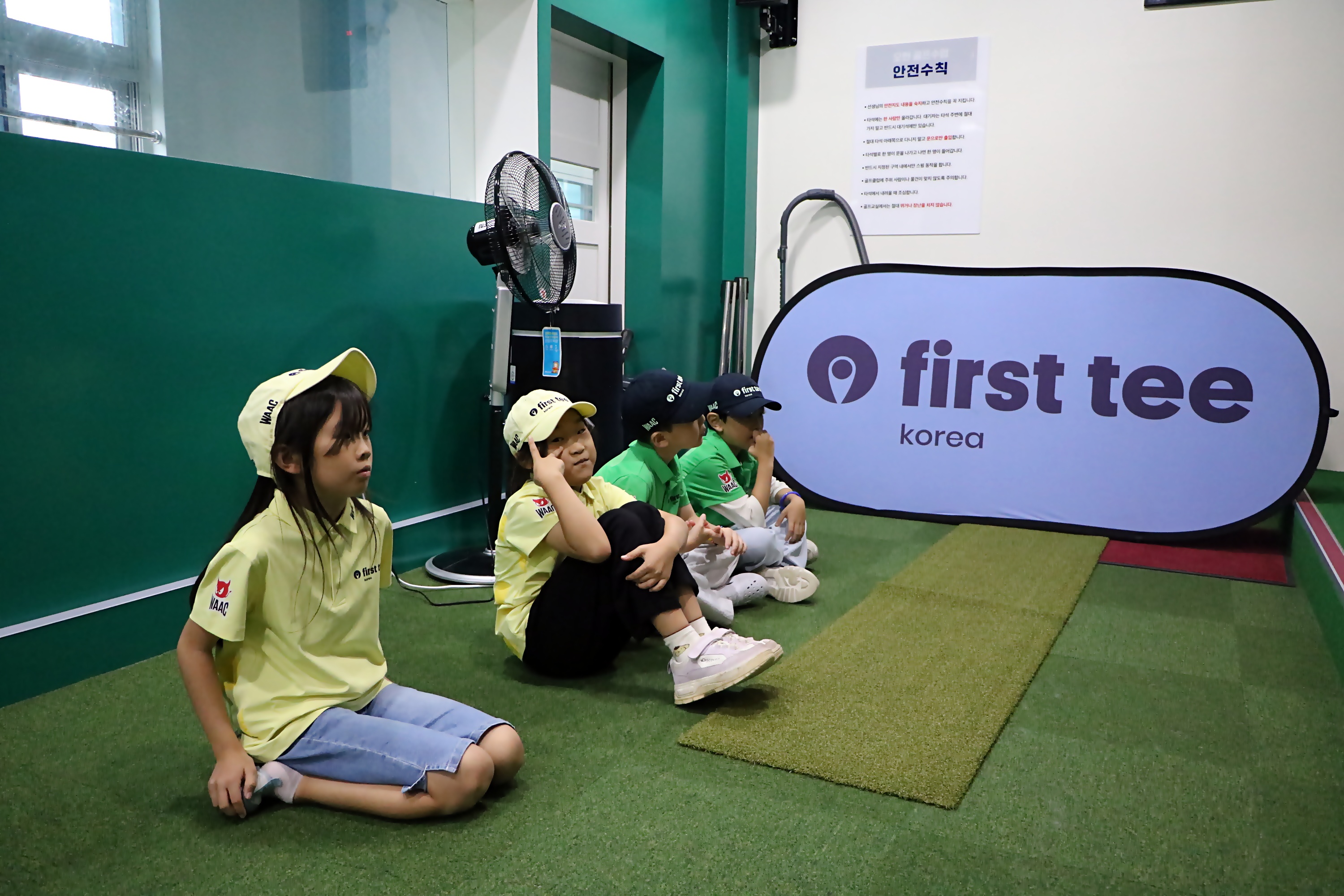 자신이 연습할 차례를 안전구역에서 대기하며 기다리고 있는 아이들