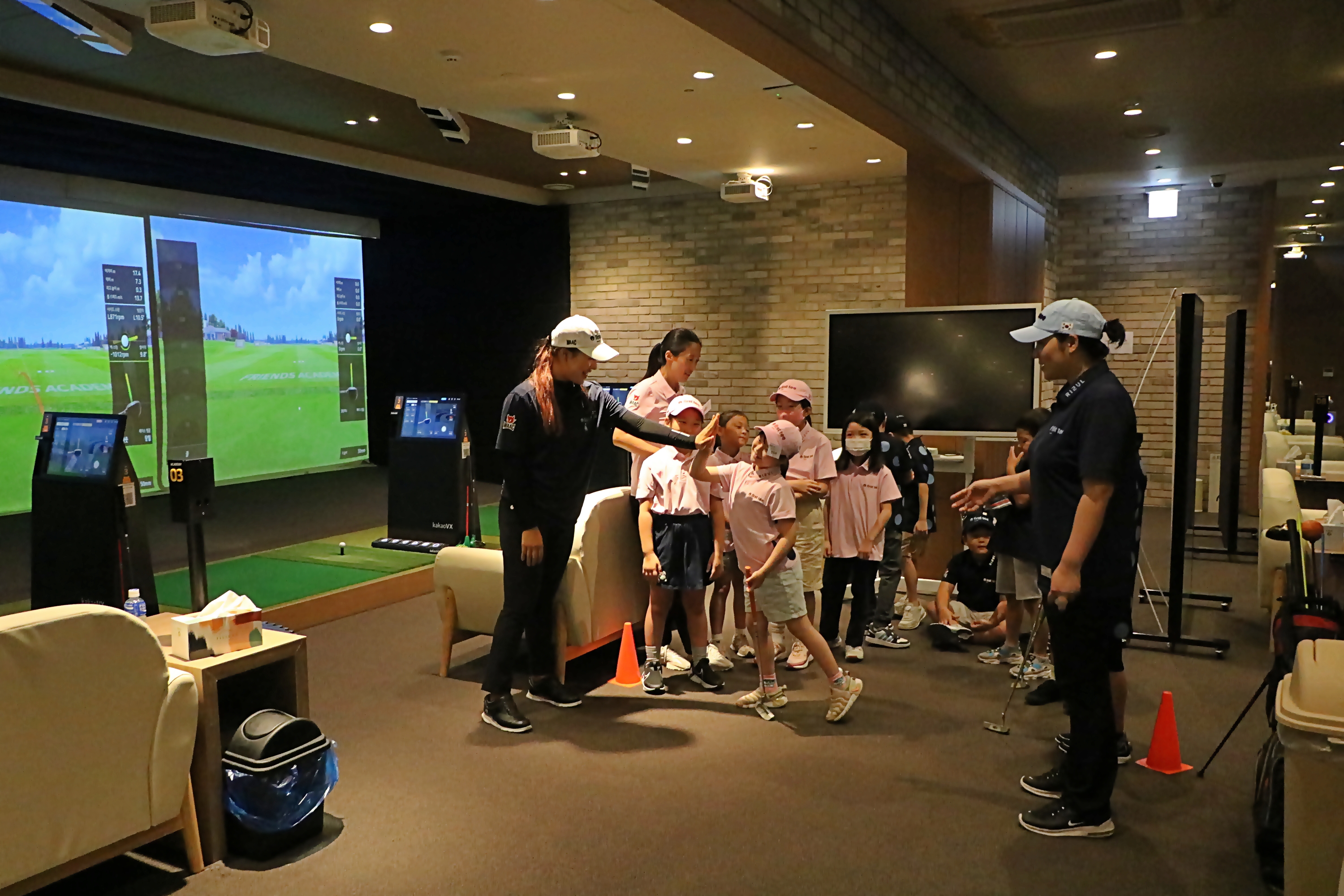 하이파이브를 하며 아이들을 격려해 주고 있는 윤이나 코치
