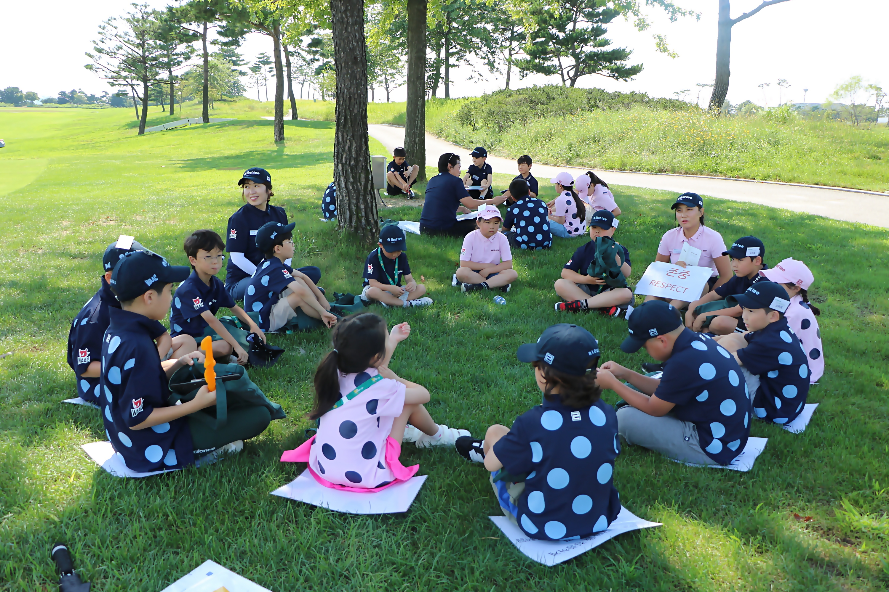9가지 핵심 가치 가운데 존중에 대한 설명을 듣고 있는 아이들