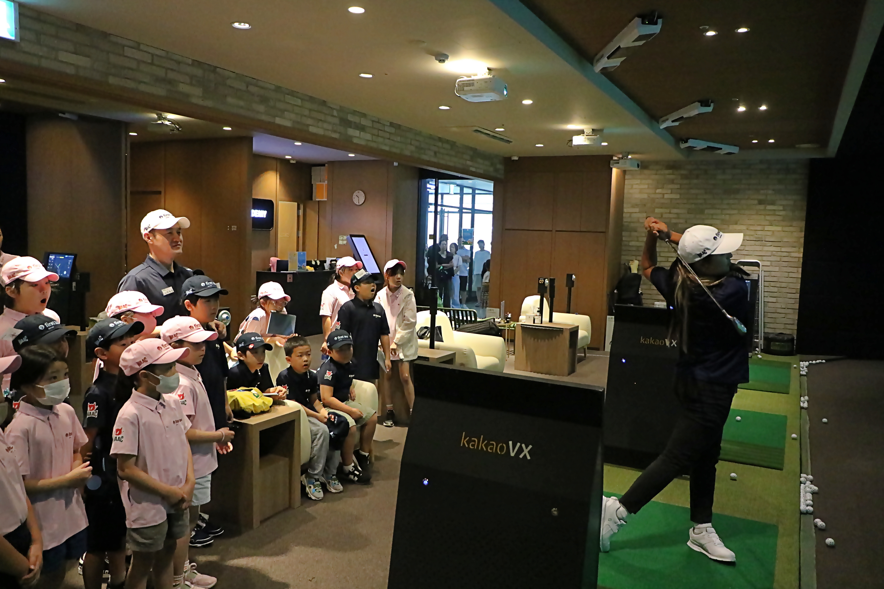 세계 최정상, 윤이나 코치의 아이언샷 시범을 지켜보며 놀라워 하는 아이들