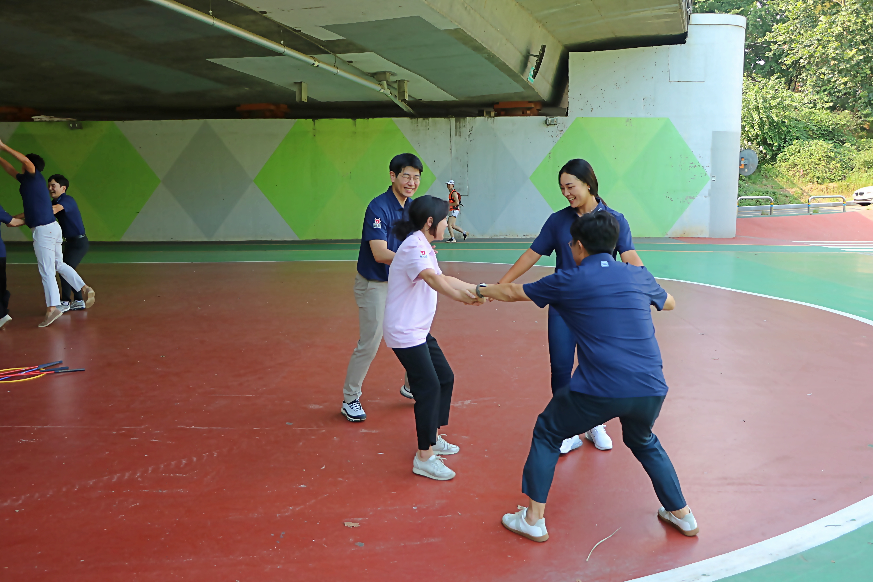 교육생들이 협동심을 키울 수 있도록 해주는 왕게임을 직접 실습해 보고 있는 모습