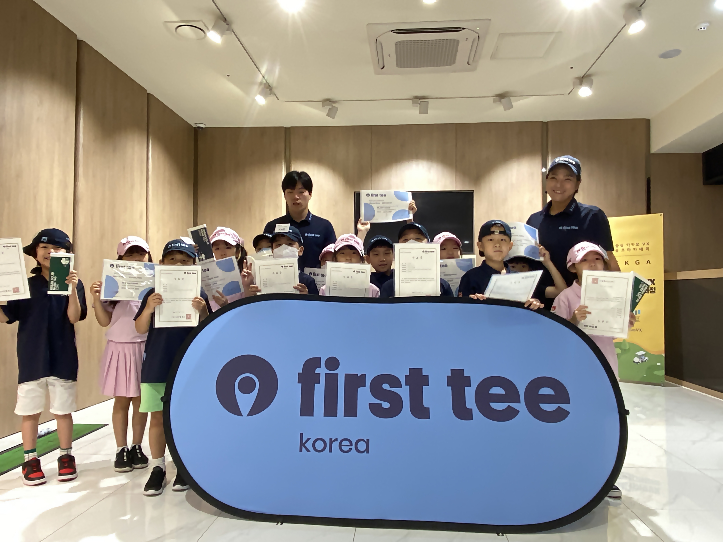 자랑스럽게 자신의 수료증을 들고 활짝 웃고 있는 플레이어 레벨반 아이들