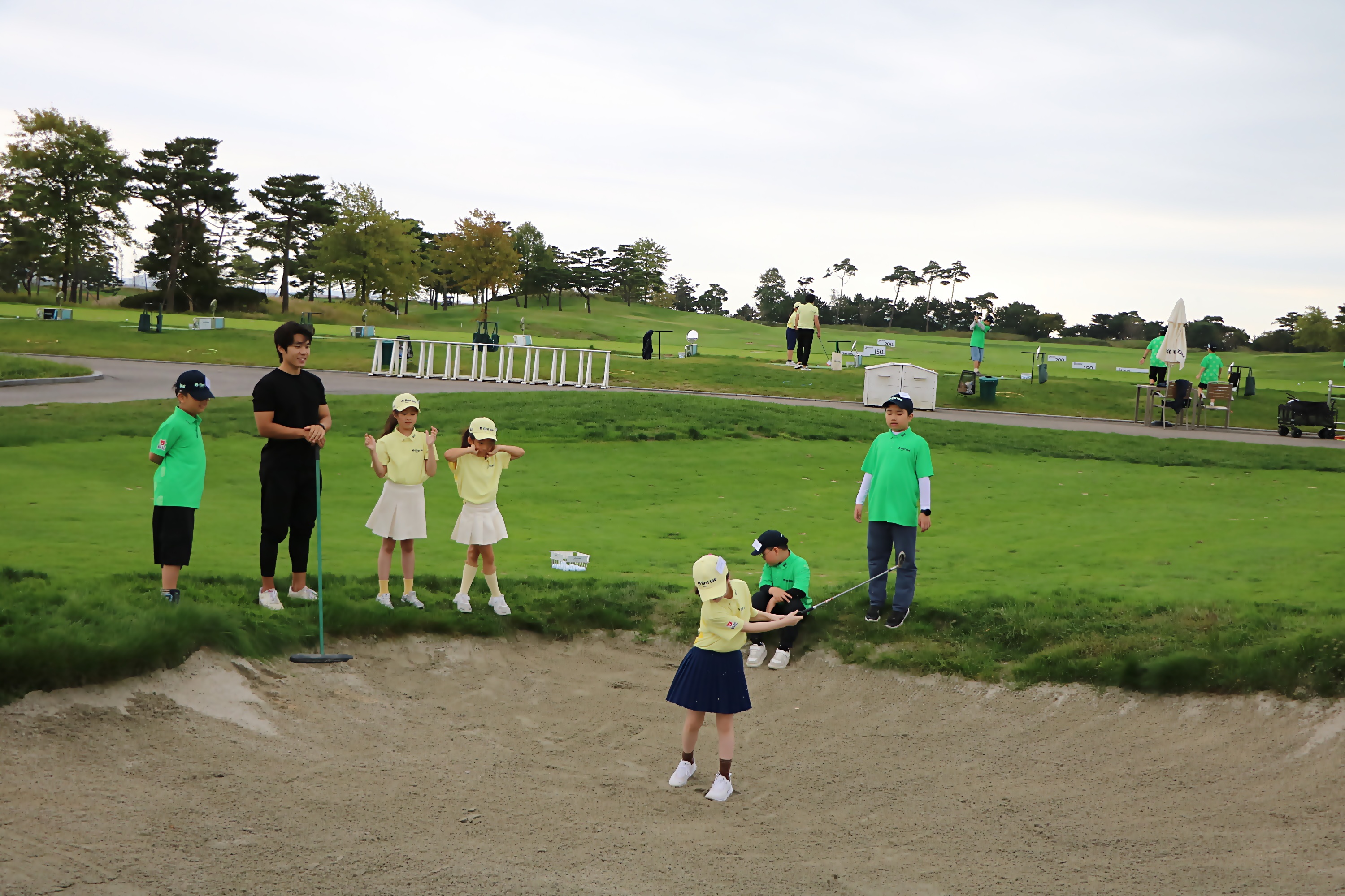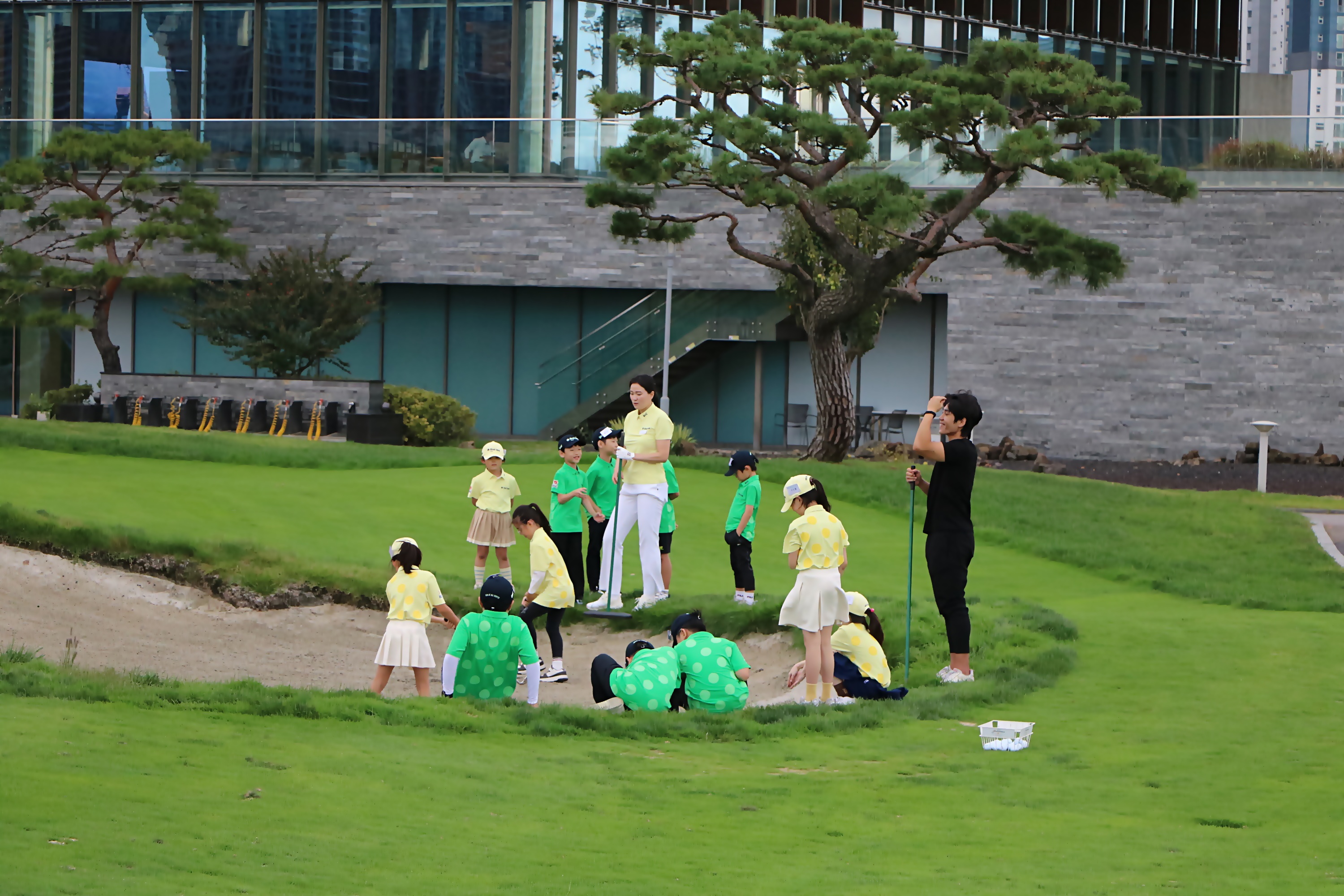 2조로 나뉘어 벙커샷 실습을 하고 있는 모습