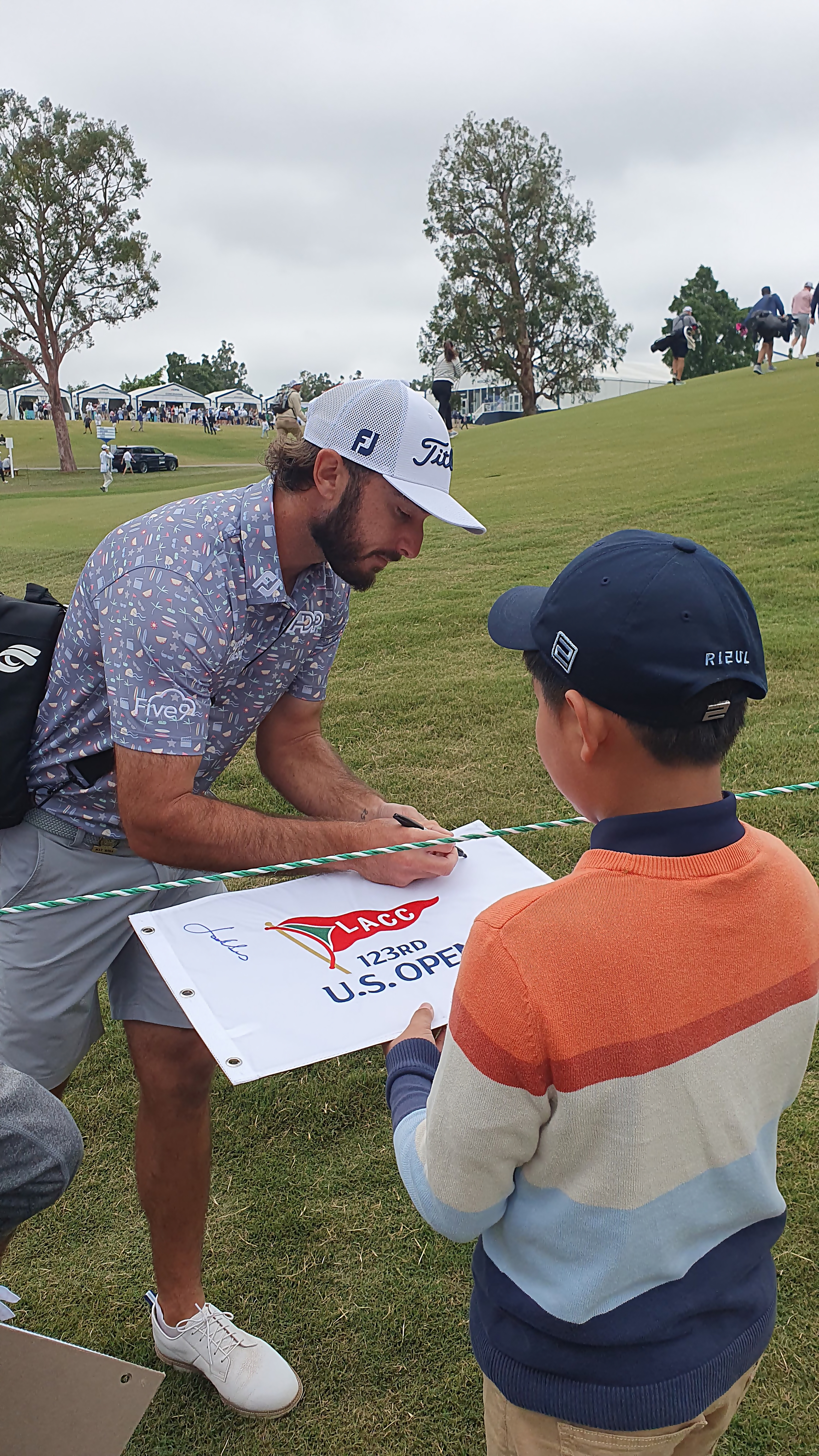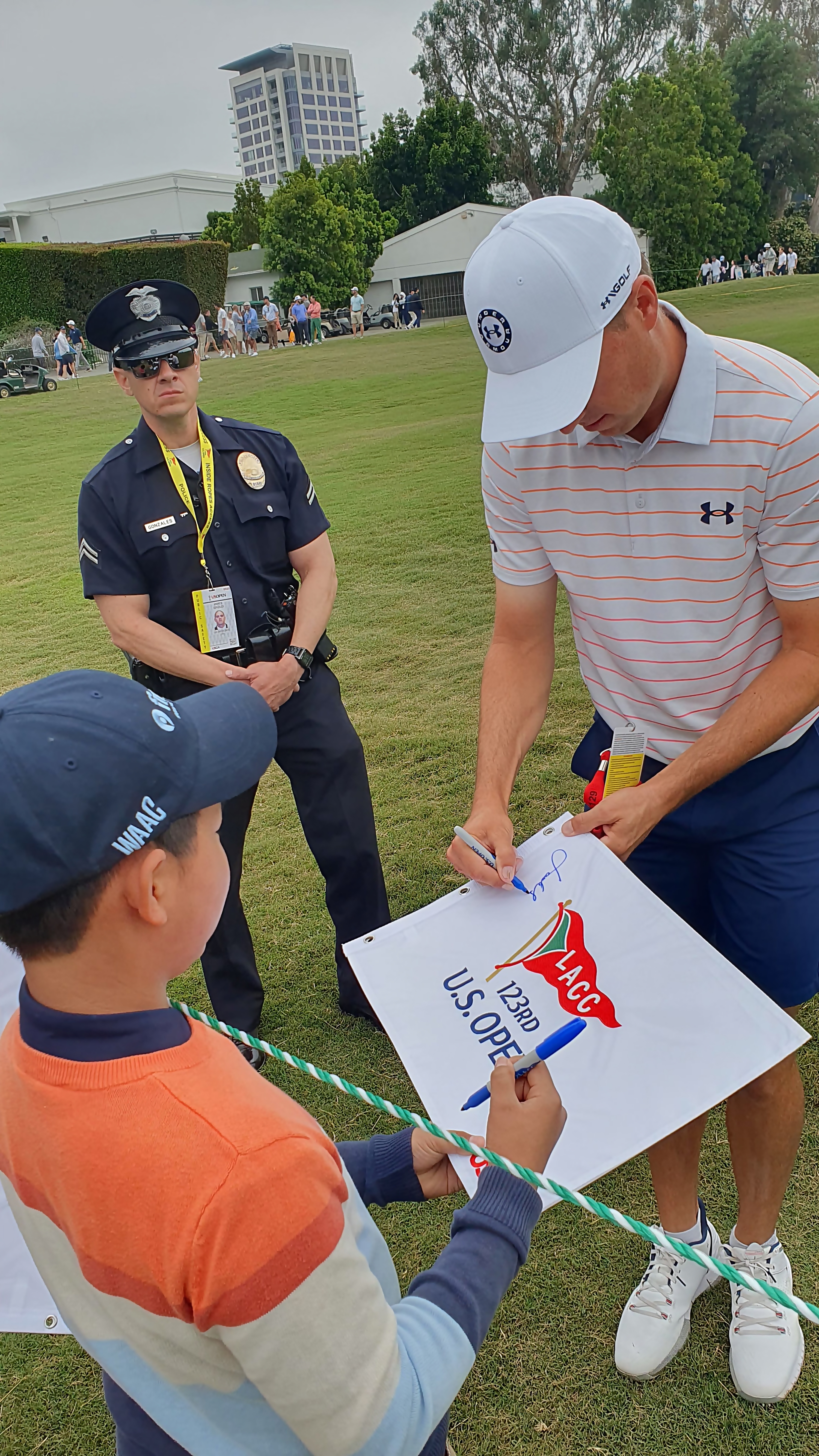 페어웨이 갤러리 통로에서 선수들에게 사인을 받고 있는 모습