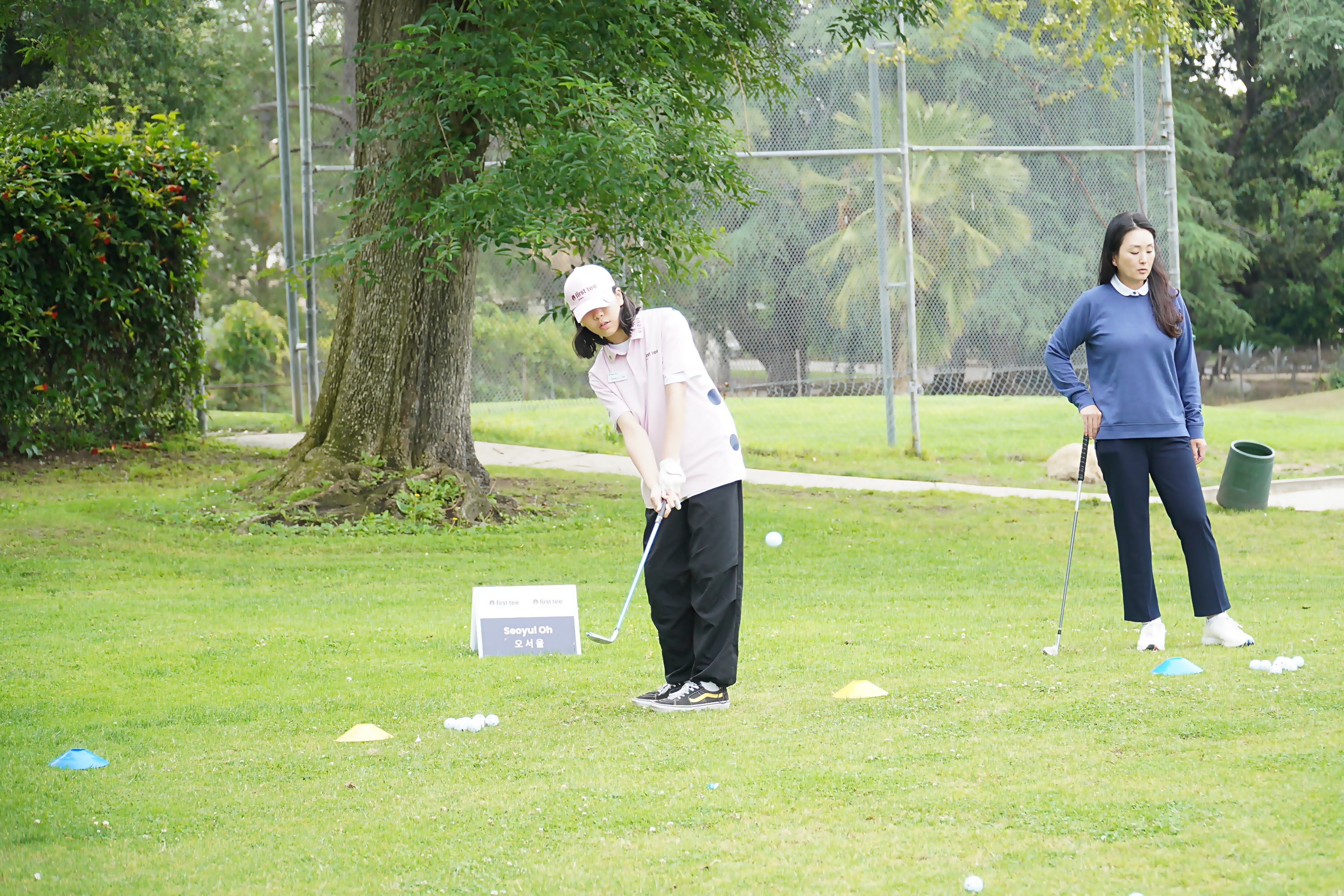 코치님께 숏게임에 관한 원포인트 레슨을 받으며 숏게임 감각을 끌어올리고 있는 모습