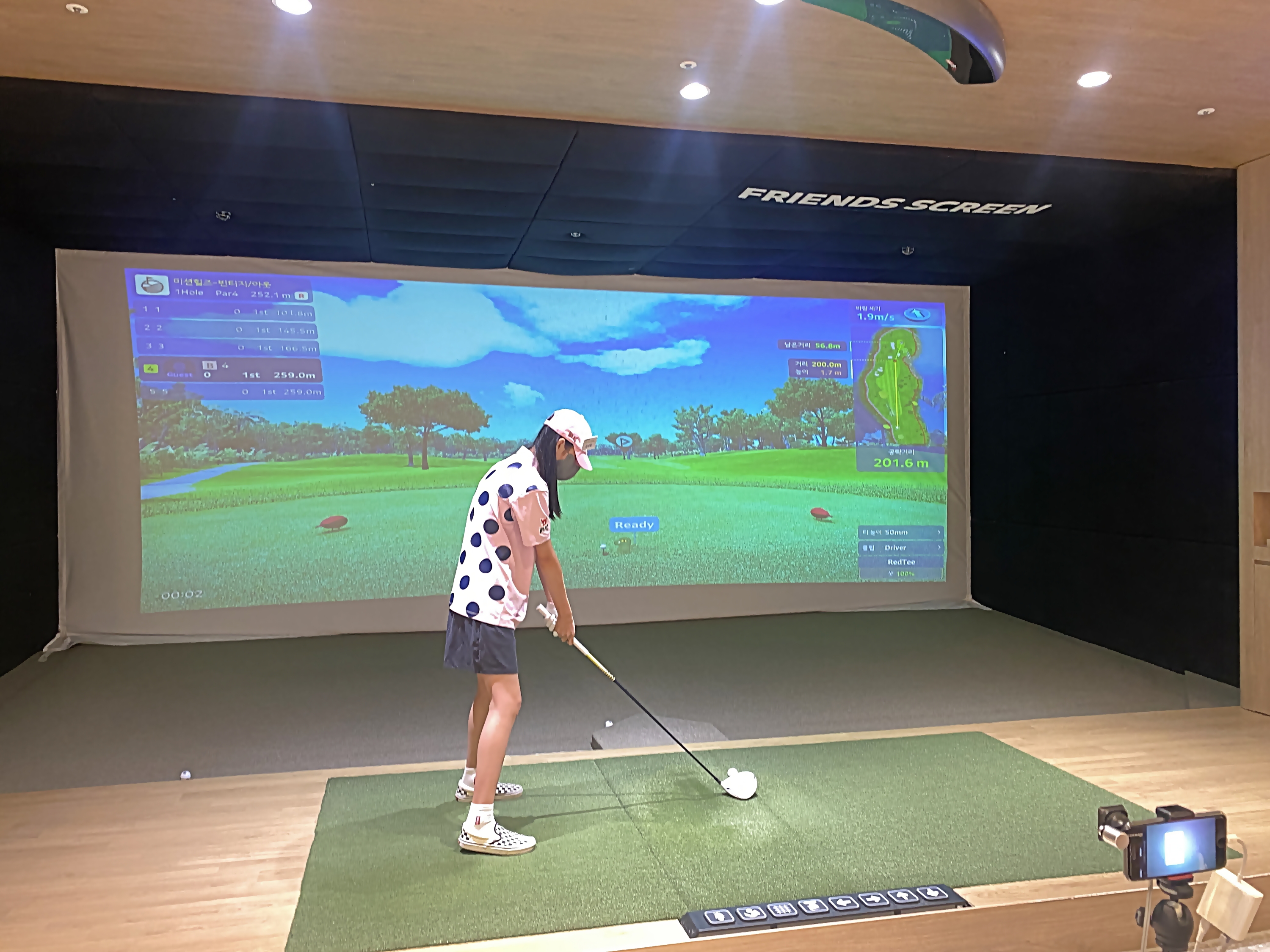 국내 여건상 실제 필드로 나가 라운드를 하기가 어렵기 때문에 그 대안으로 스크린에서 골프경기를 하고 있는 모습