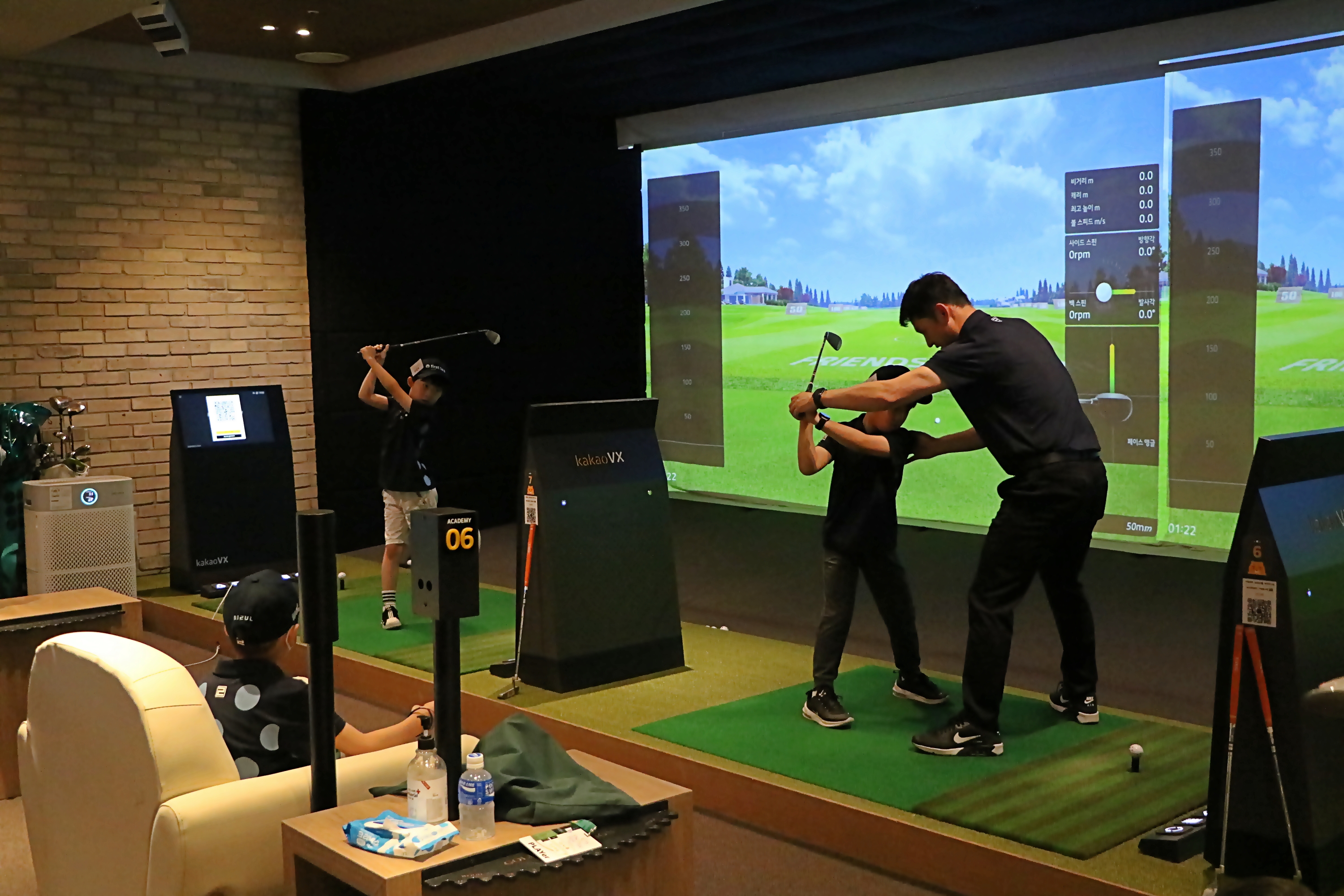 톱스윙 동작을 개인별로 교정해 주고 있는 모습