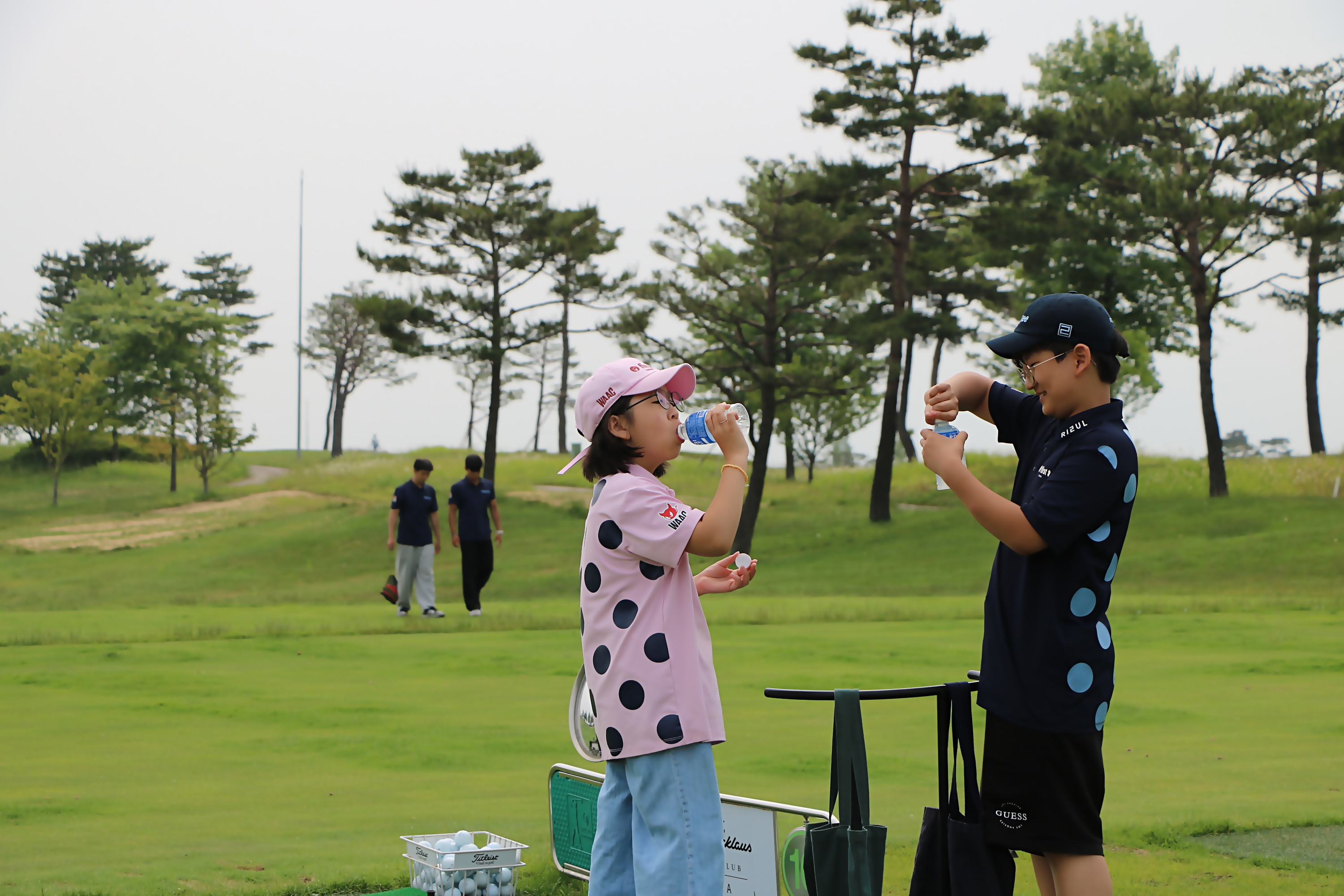 수업 중간 중간 스포츠 이온음료를 마시며 수분을 보충하고 있는 모습