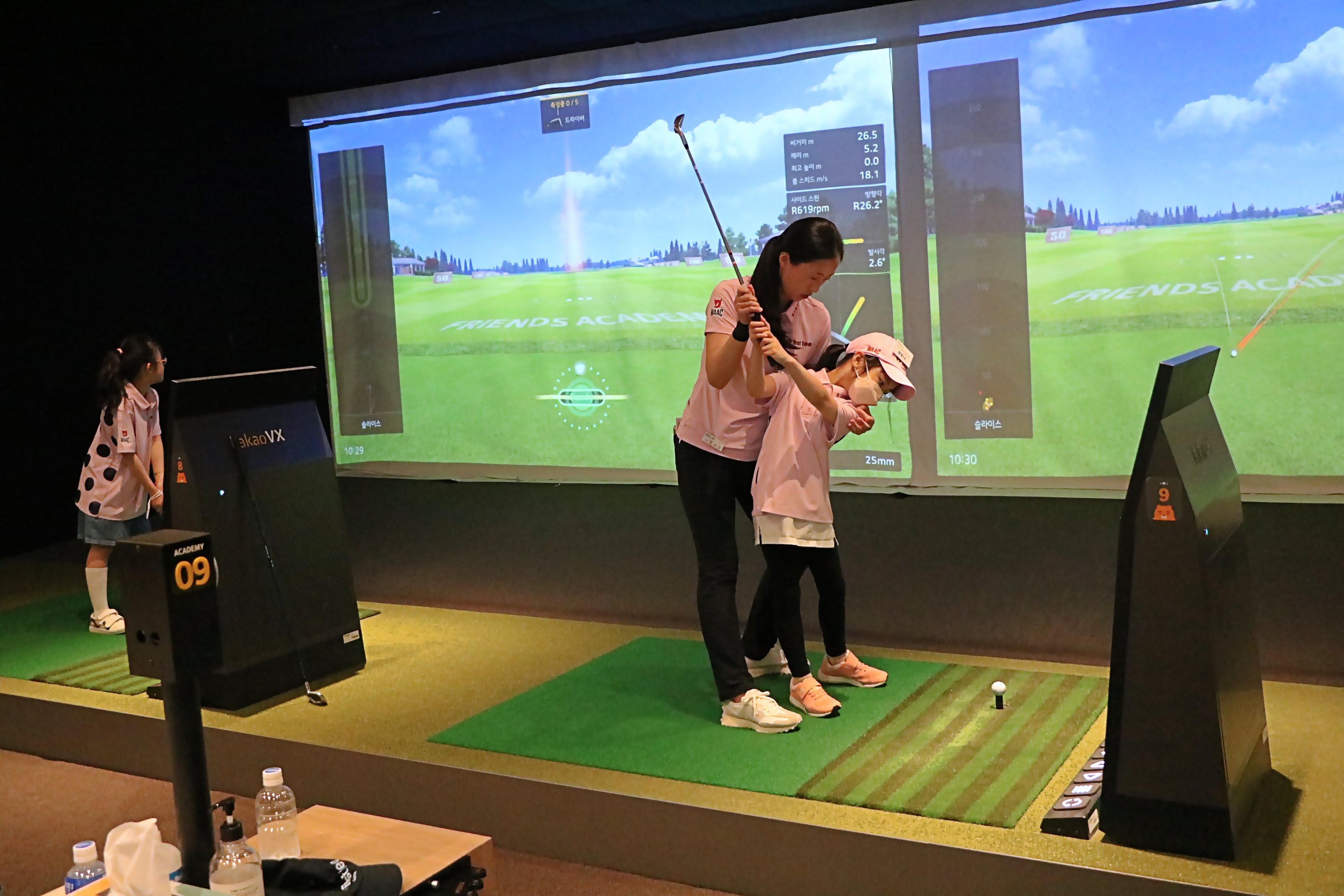 올바른 어깨 회전 요령에 대해서 설명해 주고 있는 모습