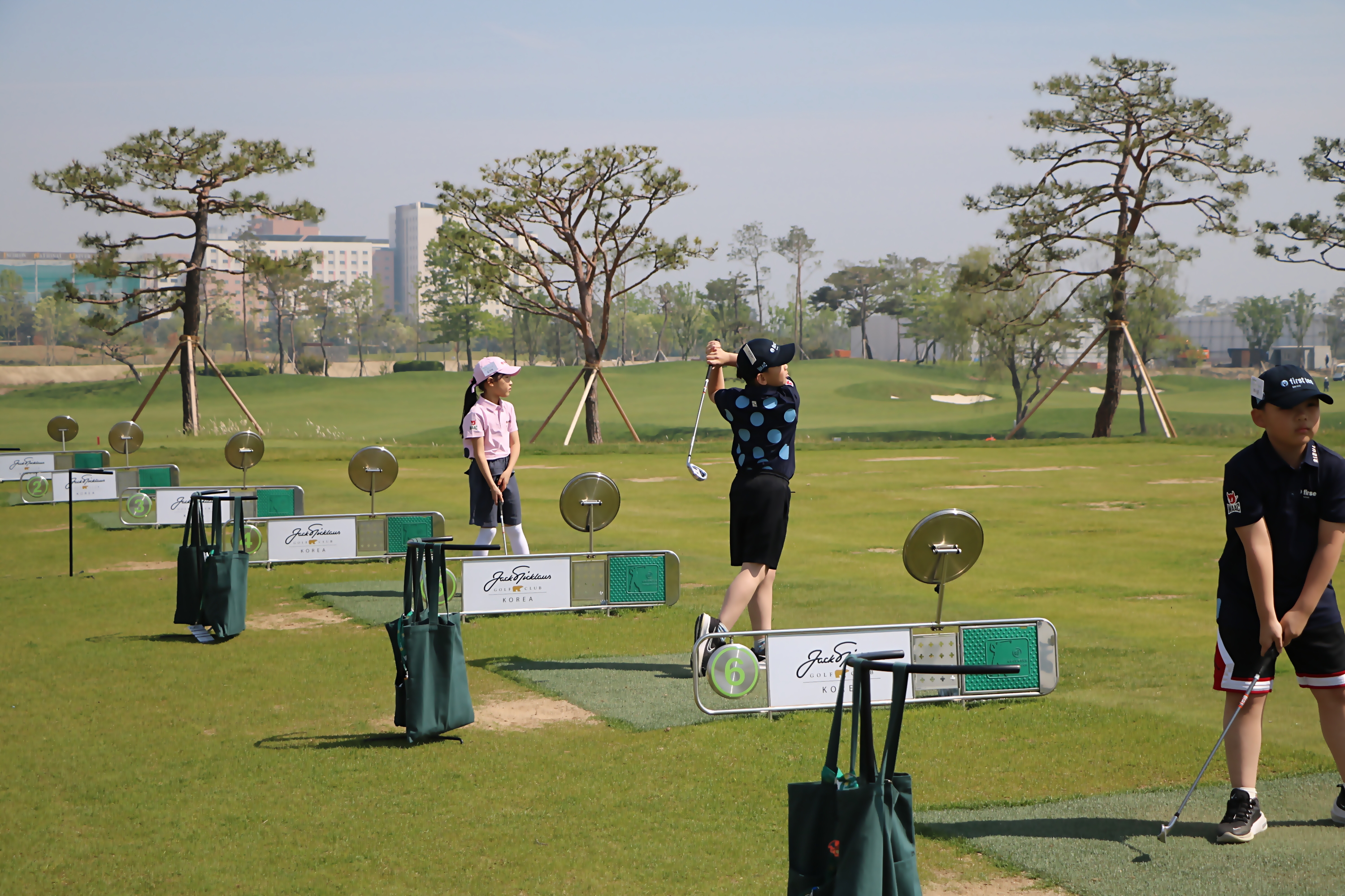 '연습스윙 1번, 실제 스윙 1번' 순으로 골프실습 중인 아이들