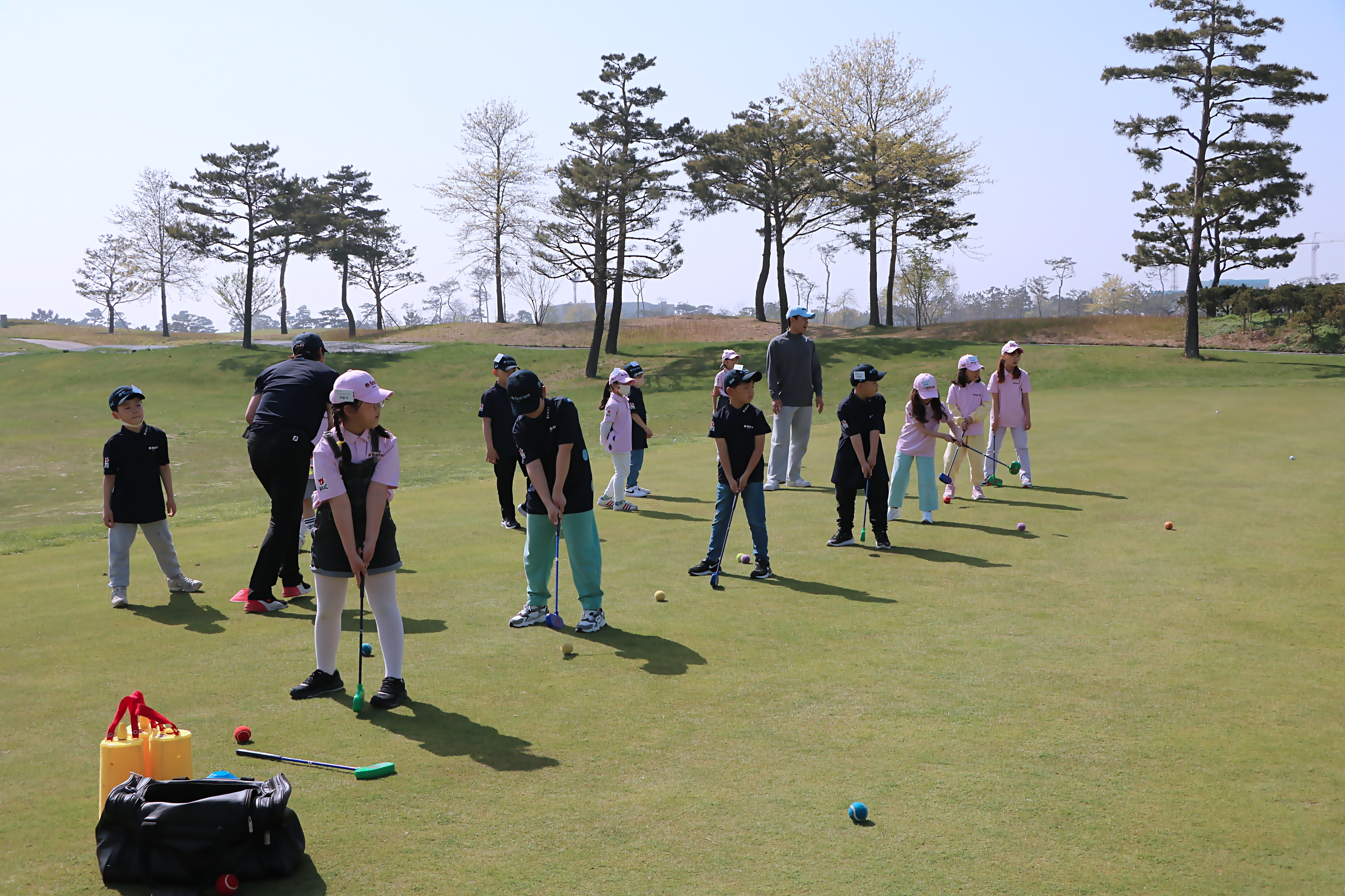 다음주 지산골프장 필드수업을 앞두고 퍼팅실습을 하고 있는 모습