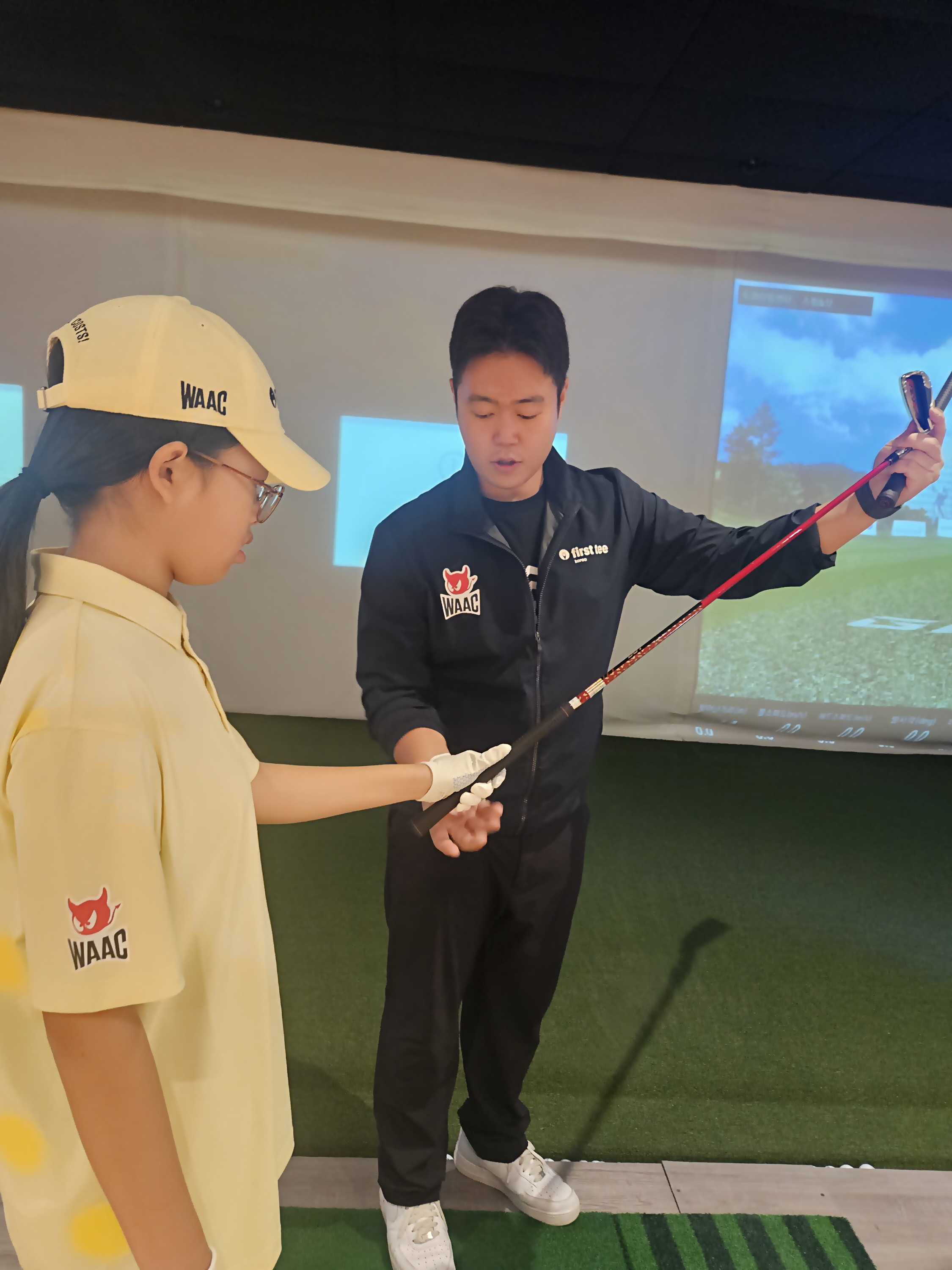 그립 잡는 법을 몸에 익숙해질 때까지 수시로 교정해 주고 있는 모습